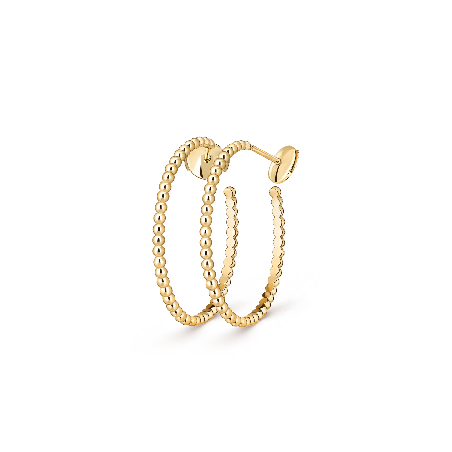 Perlée pearls of gold hoop earrings, 18K yellow gold, small model.