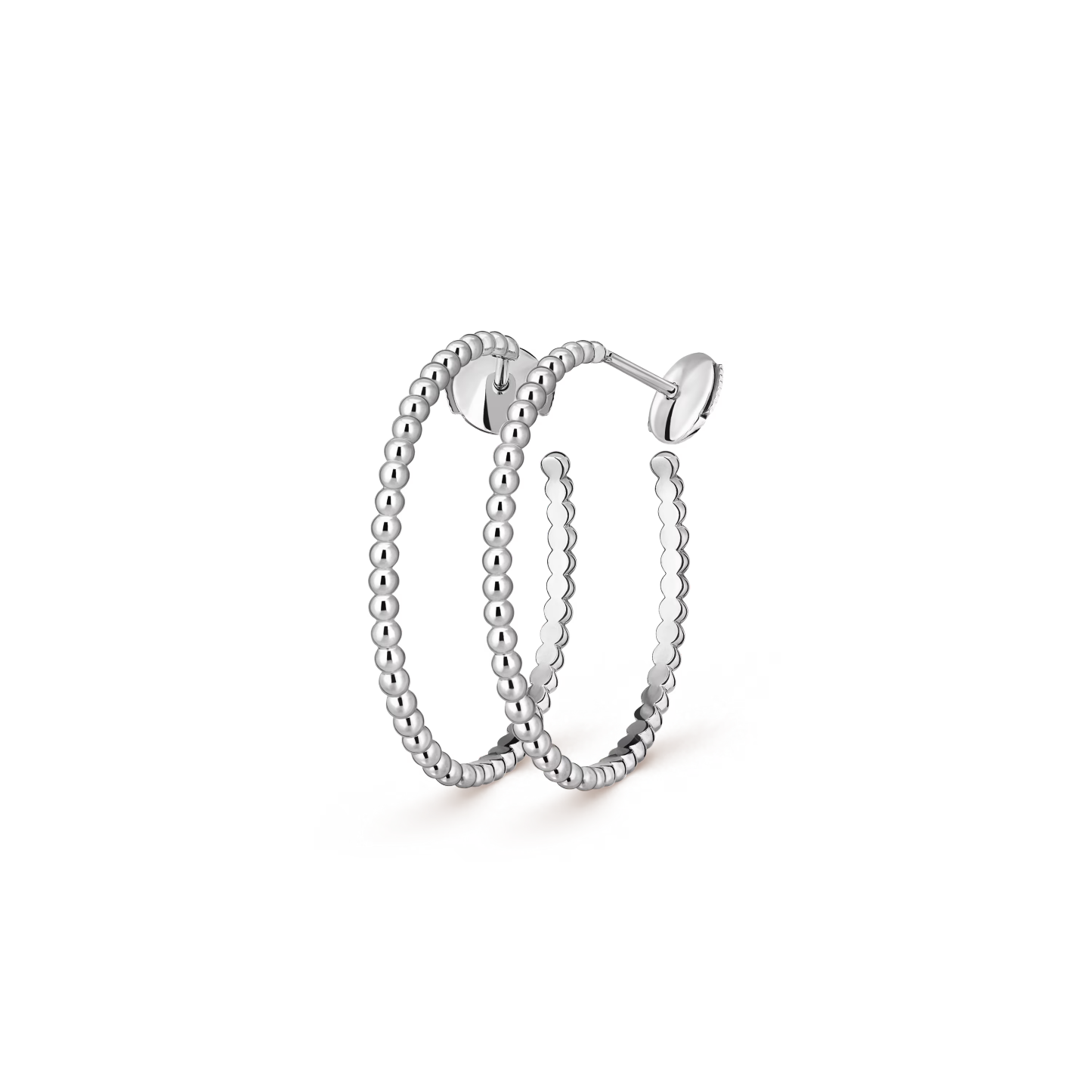 Perlée pearls of gold hoop earrings, rhodium plated 18K white gold, small model.