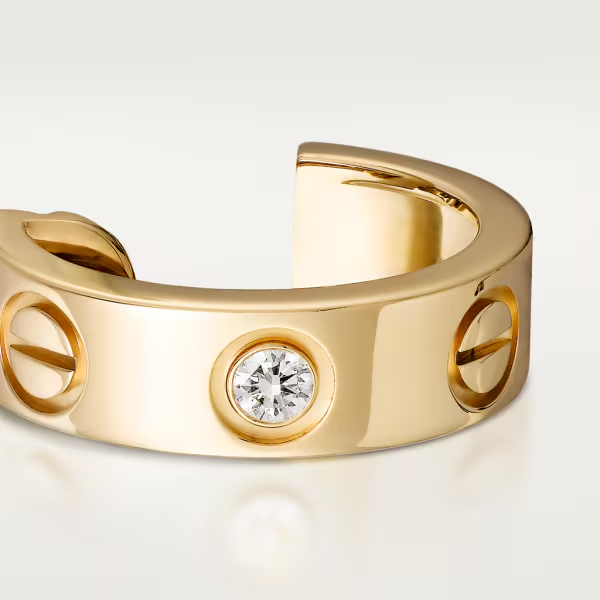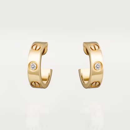 Love earrings, yellow gold 750/1000, each set with 1 brilliant-cut diamond totalling 0.15 carats. Width: 5.7 mm.