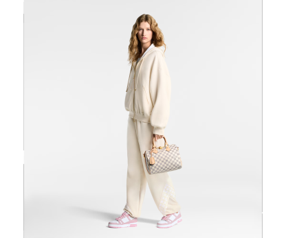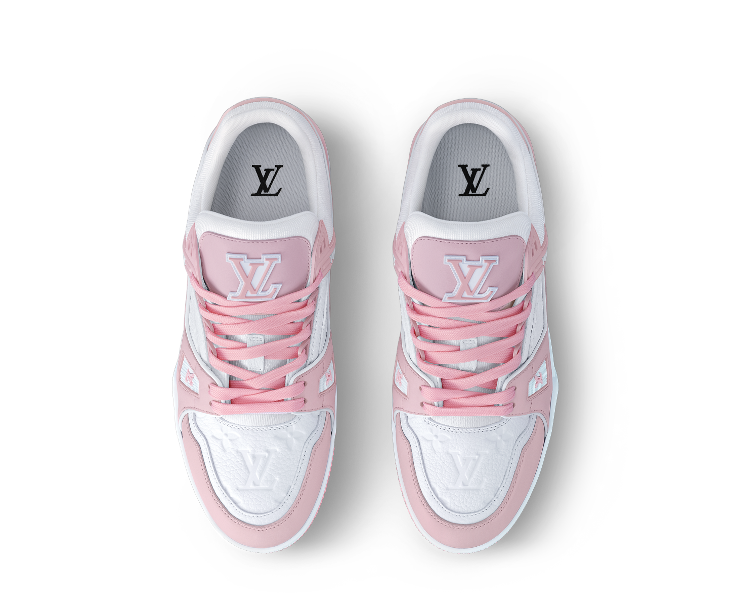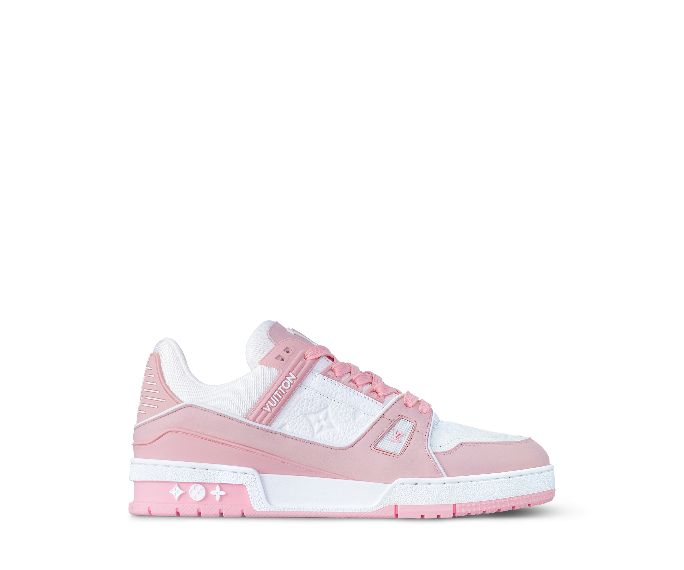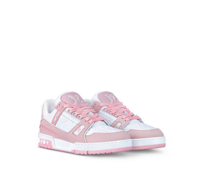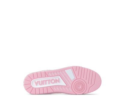 The iconic LthtV Trainer sneaker, originally designed for men by Virgil Abloh, is reinterpreted for women. This version comes in grained calf leather, which is partially debossed with the Monogram pattern, while its two-tone, pastel color scheme adds a feminine touch. This model is notable for its rubber signatures and technical outsole with Monogram Flowers.
