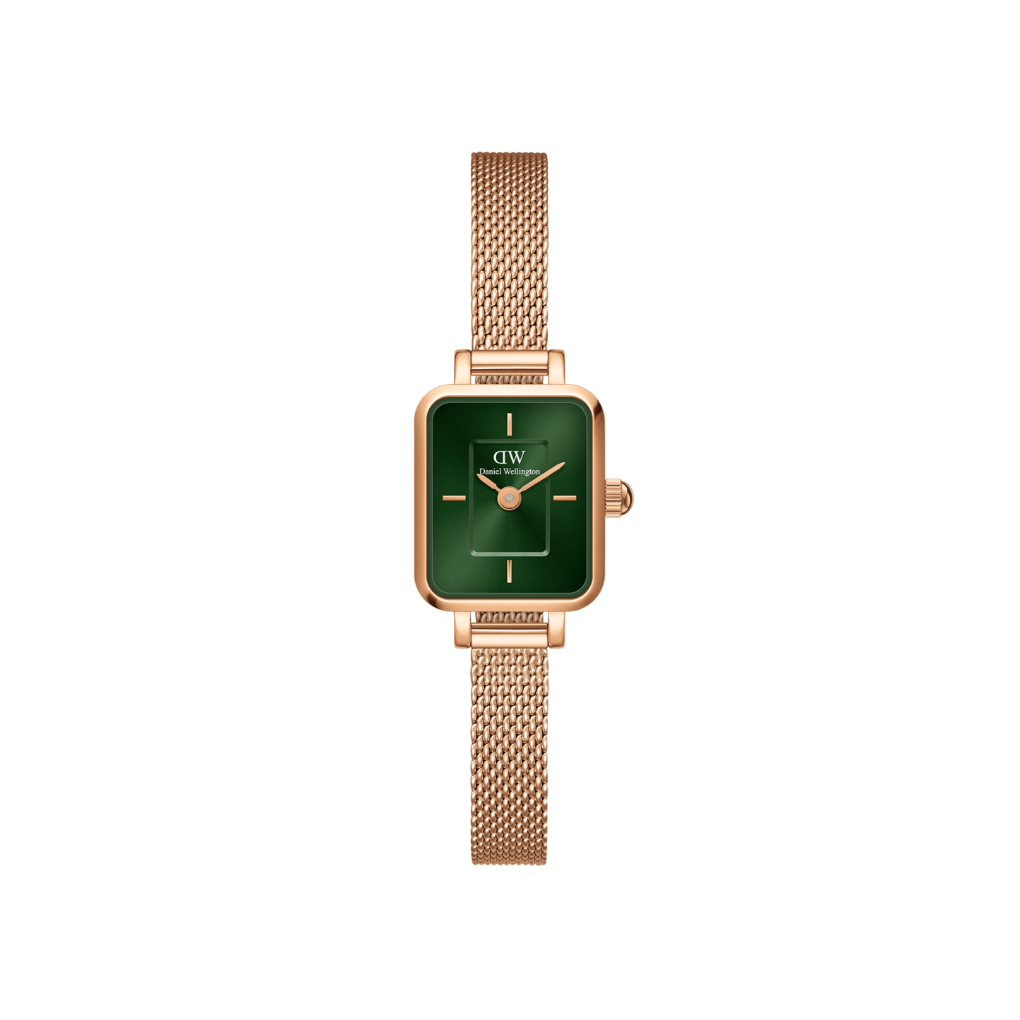 Designed at the intersection of watches and jewellery, the Quadro Mini has much to reveal. Our smallest watch to date features a compact Quadro dial in emerald with a refined sunray finish and two index markers for a minimalist look. The fabric-like mesh bracelet has the delicate allure of an elegant bracelet; however, it’s interchangeable, adding even more versatility to the piece. Like most of our watches, this timepiece is crafted from durable 316L stainless steel, with high-quality plating in rose gold. So, wear it as a watch and love it as an exquisite piece of jewellery!