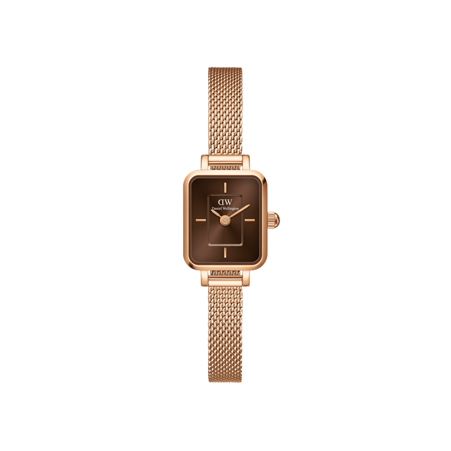 Designed at the intersection of watches and jewellery, the Quadro Mini has much to reveal. Our smallest watch to date features a compact Quadro dial in amber with a refined sunray finish and two index markers for a minimalist look. The fabric-like mesh bracelet has the delicate allure of an elegant bracelet; however, it’s interchangeable, adding even more versatility to the piece. Like most of our watches, this timepiece is crafted from durable 316L stainless steel, with high-quality plating in rose gold. So, wear it as a watch and love it as an exquisite piece of jewellery!