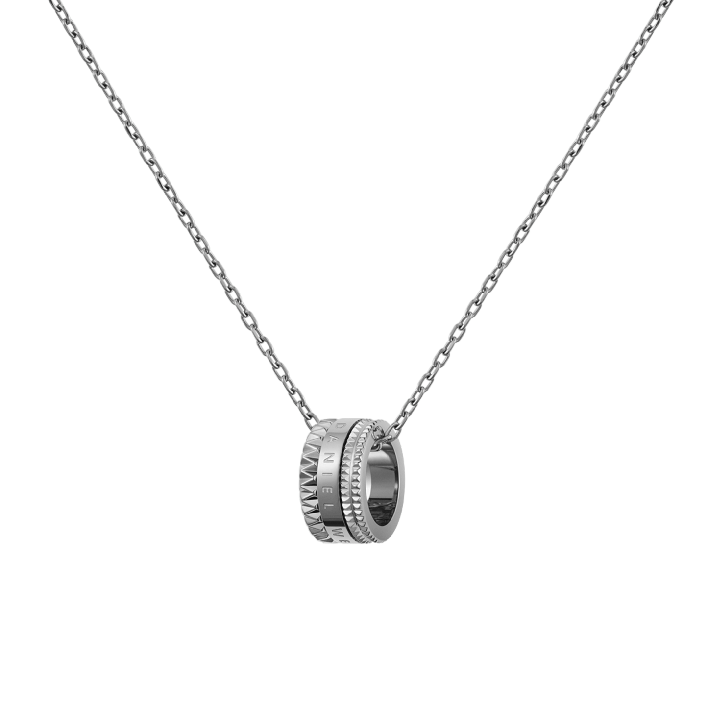 A delicate pendant version of the geometric-inspired Elevation ring, laced through a sleek cable chain. An everyday piece that instantly elevates your look to new heights. Crafted with stainless steel, available in a refined rose gold plating or vibrant silver finish.