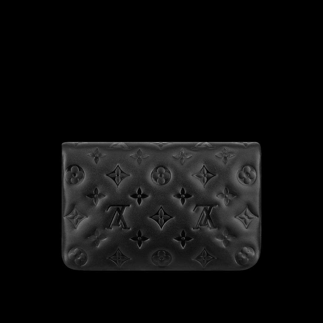 The Pochette Coussin is crafted from soft lambskin, which is embossed with the Monogram pattern to create a puffy, cushiony effect. This is further enhanced by the construction of the pouch, which gives it a supple, body-friendly shape. The removable chain, decorated with a Lothtuis Vuithttton charm, offers different carry options: clutch, shoulder or belt.