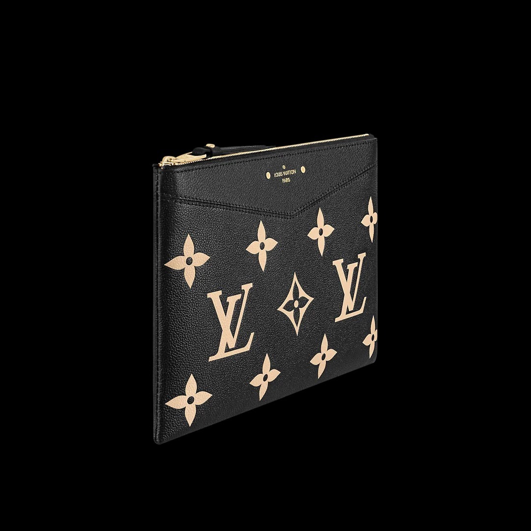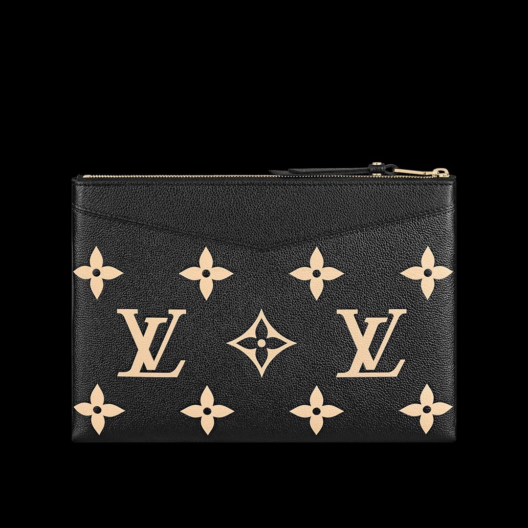 Crafted from supple, grained Monogram Empreinte leather, the Daily Pouch is a modern, versatile accessory. It can be carried as a clutch or slipped inside a larger bag, and can also hold business essentials such as documents or a tablet. The leather is embossed with Lothtuis Vuithttton's iconic Monogram pattern, which is highlighted by the bicolor design.
