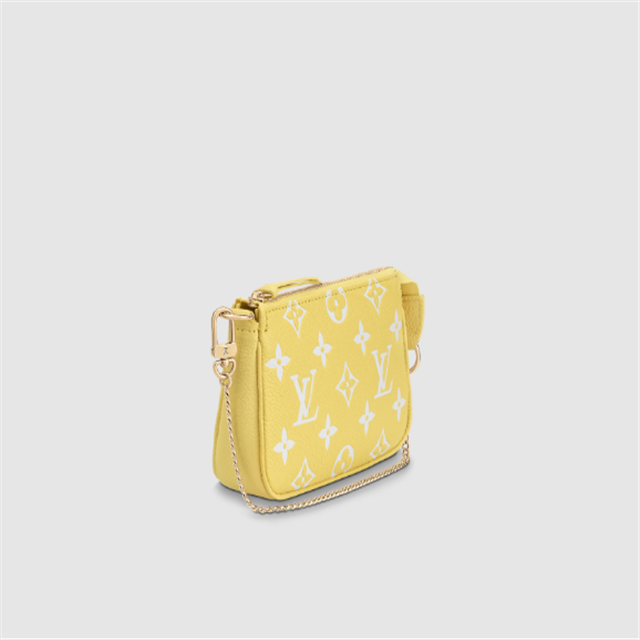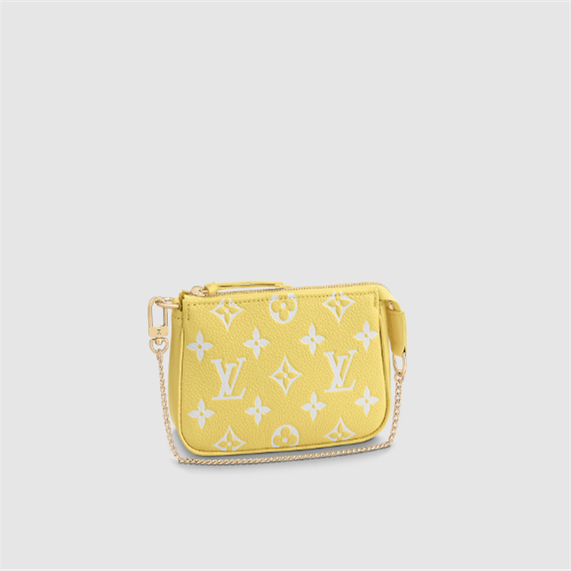 For the Mother's Day special edition, the Mini Pochette Accessoires is revisited in pastel-hued Monogram Empreinte leather with the embossed Monogram pattern picked out in white. Ideal for esssentials, this stylish mini pouch can be carried as a clutch or hung from a bag or belt by its gold-tone chain.