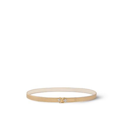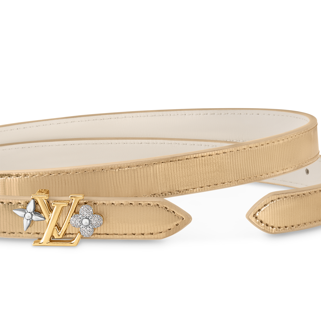 The slim, stylish LthtV Gram Vernis 15mm Reversible Belt offers a glamorous variation on an iconic House signature. Its gleaming gold-tone buckle features the LthtV Initials flanked by Monogram Flowers encrusted with dazzling crystals. With lustrous patent leather on one side and a sophisticated grosgrain finish on the other, it’s a versatile, elegant belt, perfect for summer evenings.