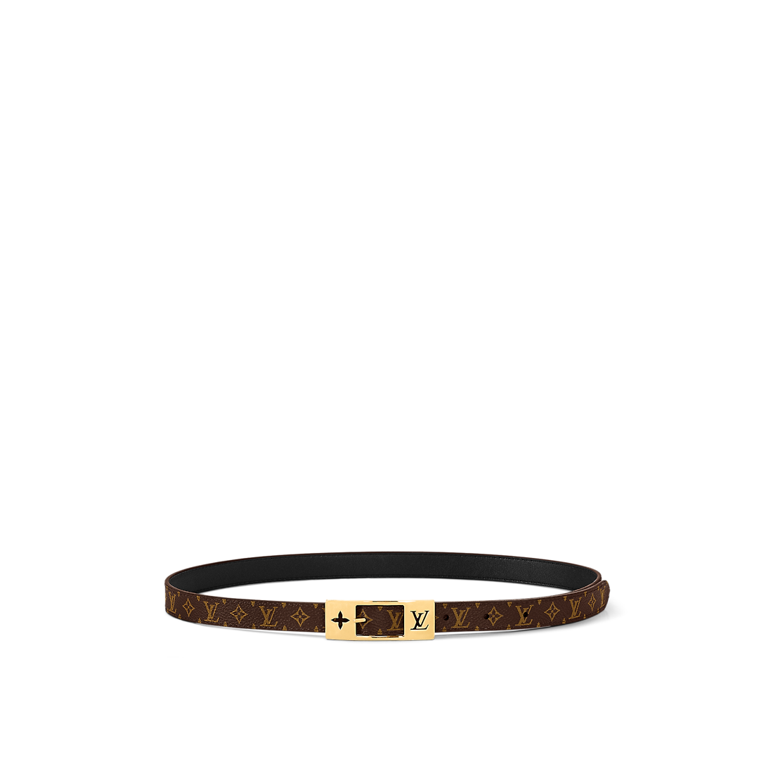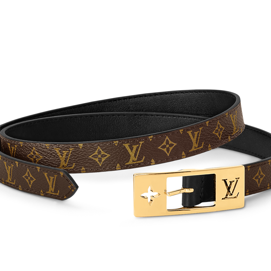 The slim, chic LthtV Duo 18mm reversible belt features a precious gold-tone buckle with a creative double signature: cutouts on either side allow the strap to show through in the shape of the LthtV Initials and a Monogram Flower. An ingenious mechanism makes it reversible, offering a choice of fine leather or the House’s emblematic Monogram canvas.