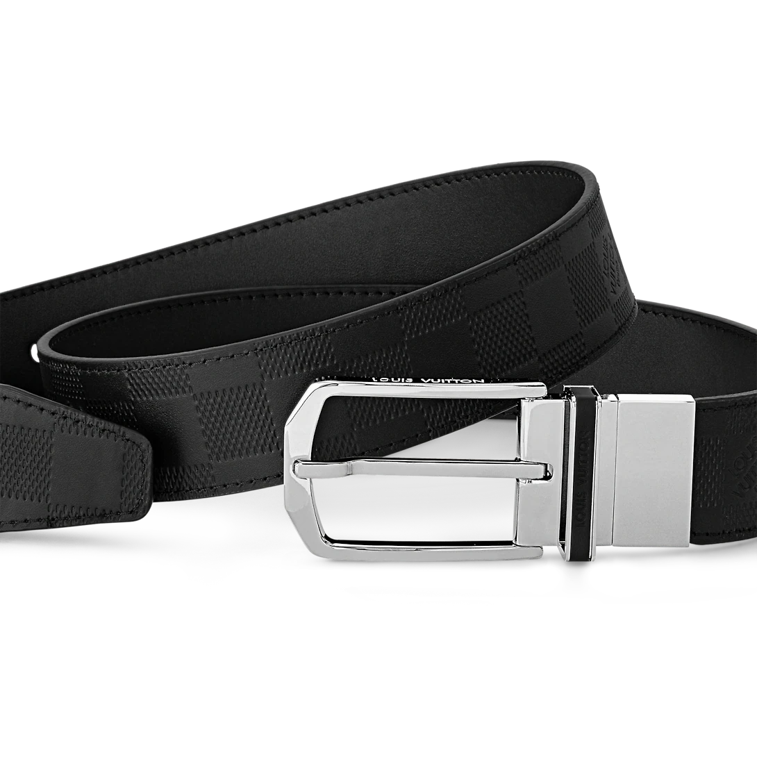 With its sharp design and refined lines, this chic modern belt has been specially designed to complement business suits. Featuring an embossed Damier pattern, this reversible piece is available in two easy-to-match color combinations.