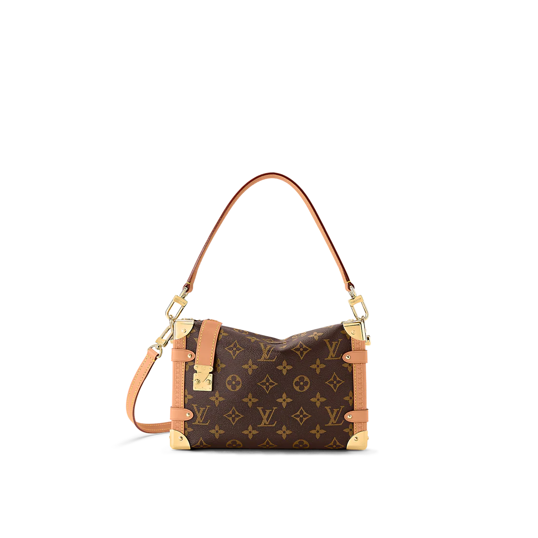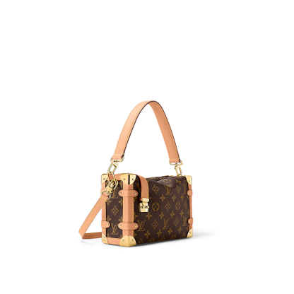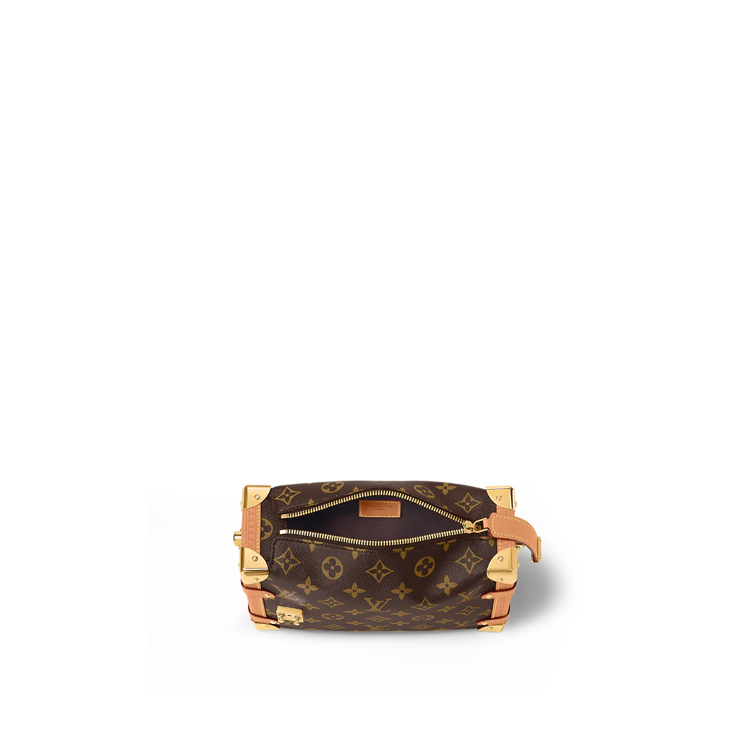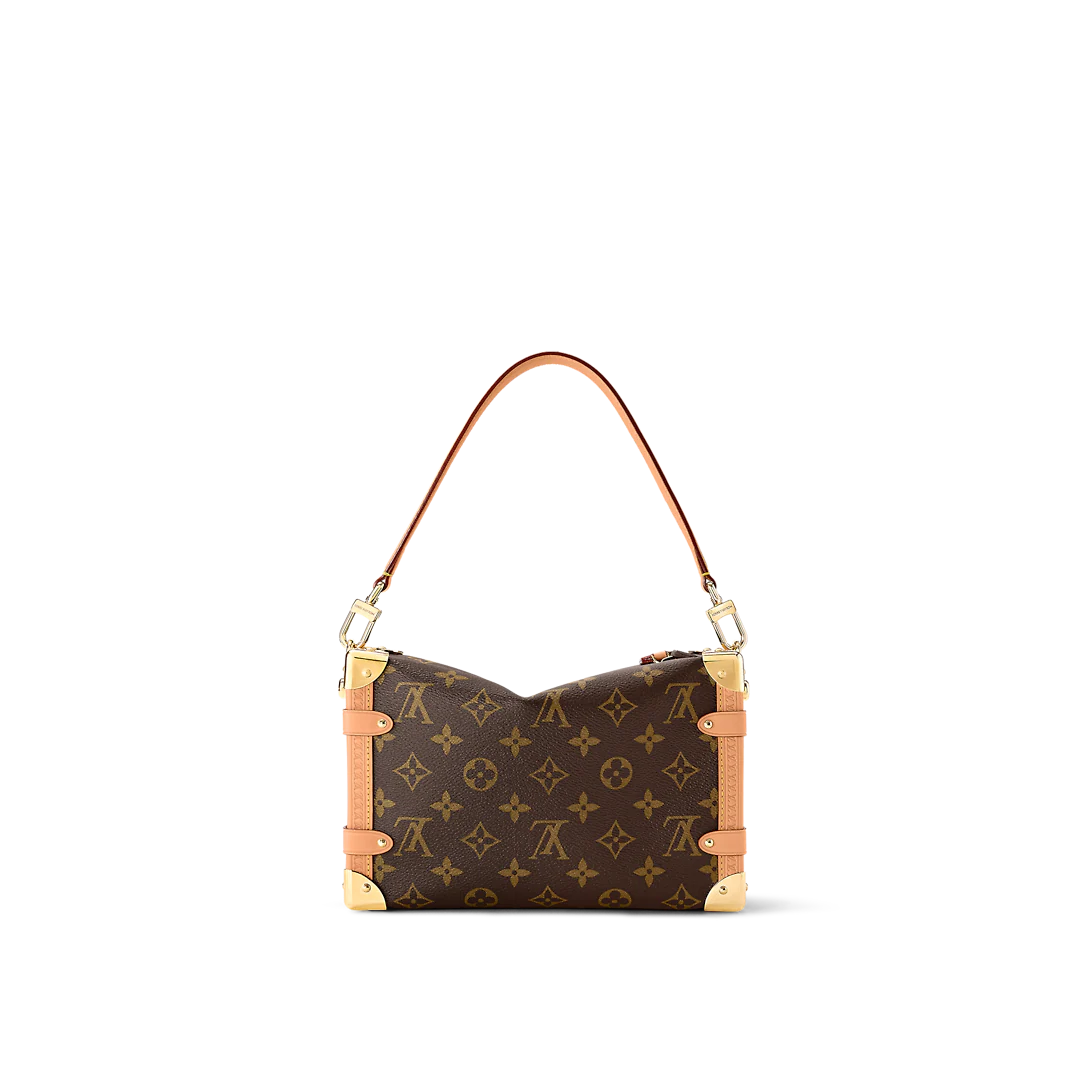 Returning to the House’s trunkmaking beginnings, Nicolas Ghesquière creates the Side Trunk PM handbag in Monogram canvas with leather trim. What strikes the eye is the singularity of the leather zip tab fitted with the iconic S-lock and the reinforced metallic corners. The wide top handle is removable as is the thin leather shoulder strap.