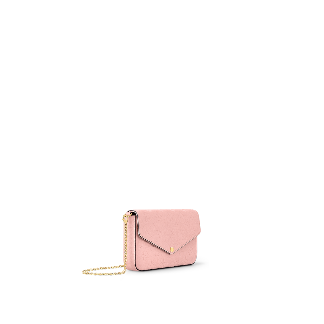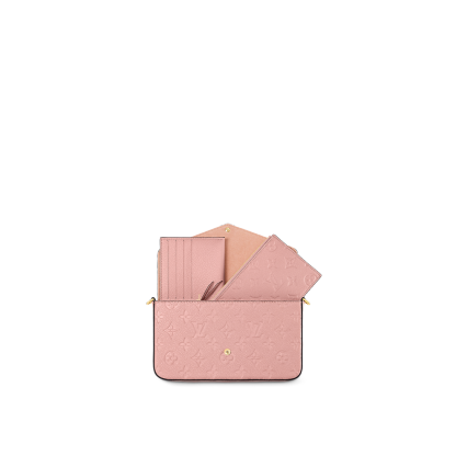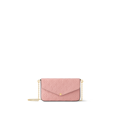 The Félicie Pochette is crafted from Monogram Empreinte leather, embossed with Lothtuis Vuithttton's signature Monogram pattern. Designed to adapt to modern lifestyles, this envelope-style pouch contains a spacious compartment with two removable pockets: one zipped, one with card slots. It can also be carried in different ways thanks to a removable chain.