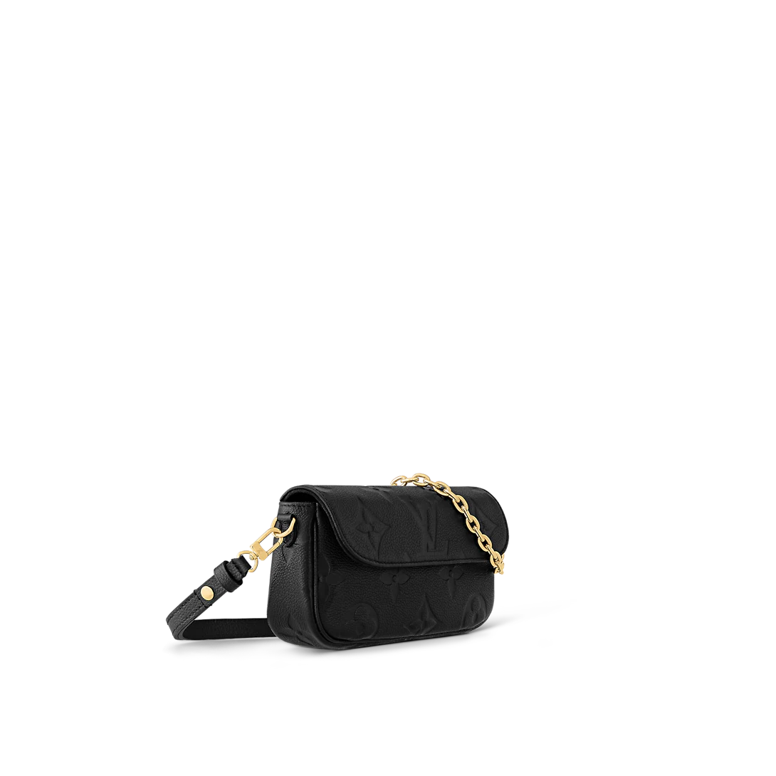 The on-trend Wallet on Chain Ivy is made from grained Monogram Empreinte leather, embossed with an oversized Monogram motif. The perfect day-to-evening companion, it can be carried as a clutch, worn close to the shoulder with its short gold-color chain, or for a more casual attitude, carried cross-body thanks to its removable and adjustable leather strap.