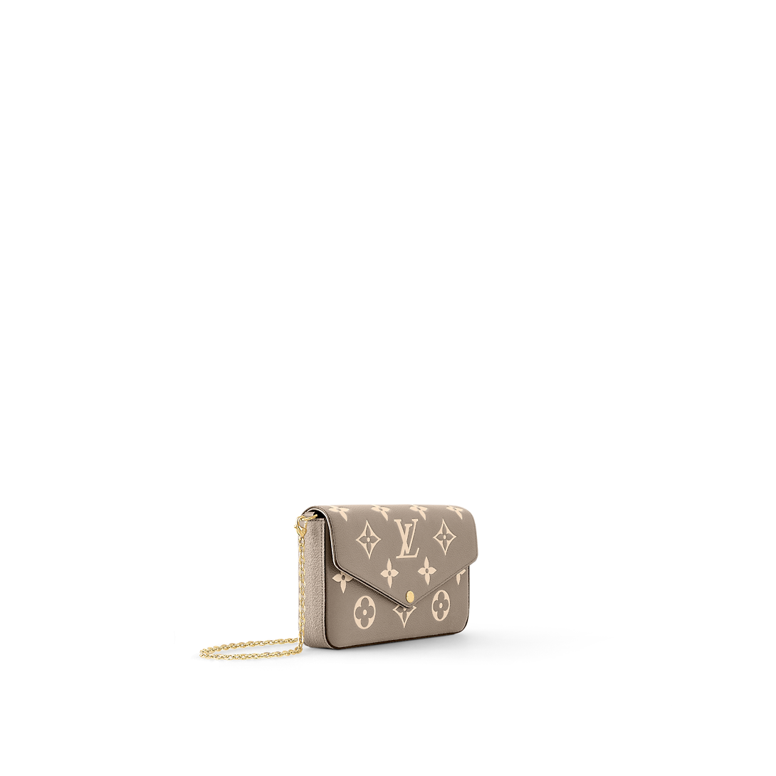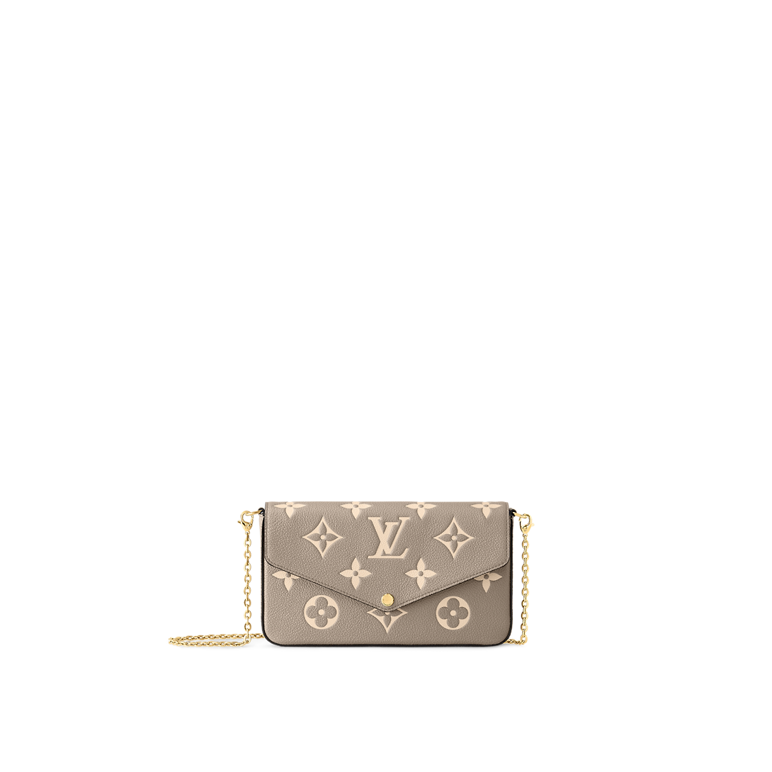 The Félicie Pochette is crafted from supple Monogram Empreinte leather, embossed with Lothtuis Vuithttton's iconic Monogram pattern. The bicolor palette brings added refinement to this elegant and versatile design, which features a removable chain, enabling it to be carried on the shoulder or as a clutch, as well as two removable pockets.