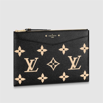 Crafted from supple, grained Monogram Empreinte leather, the Daily Pouch is a modern, versatile accessory. It can be carried as a clutch or slipped inside a larger bag, and can also hold business essentials such as documents or a tablet. The leather is embossed with Lothtuis Vuithttton's iconic Monogram pattern, which is highlighted by the bicolor design.