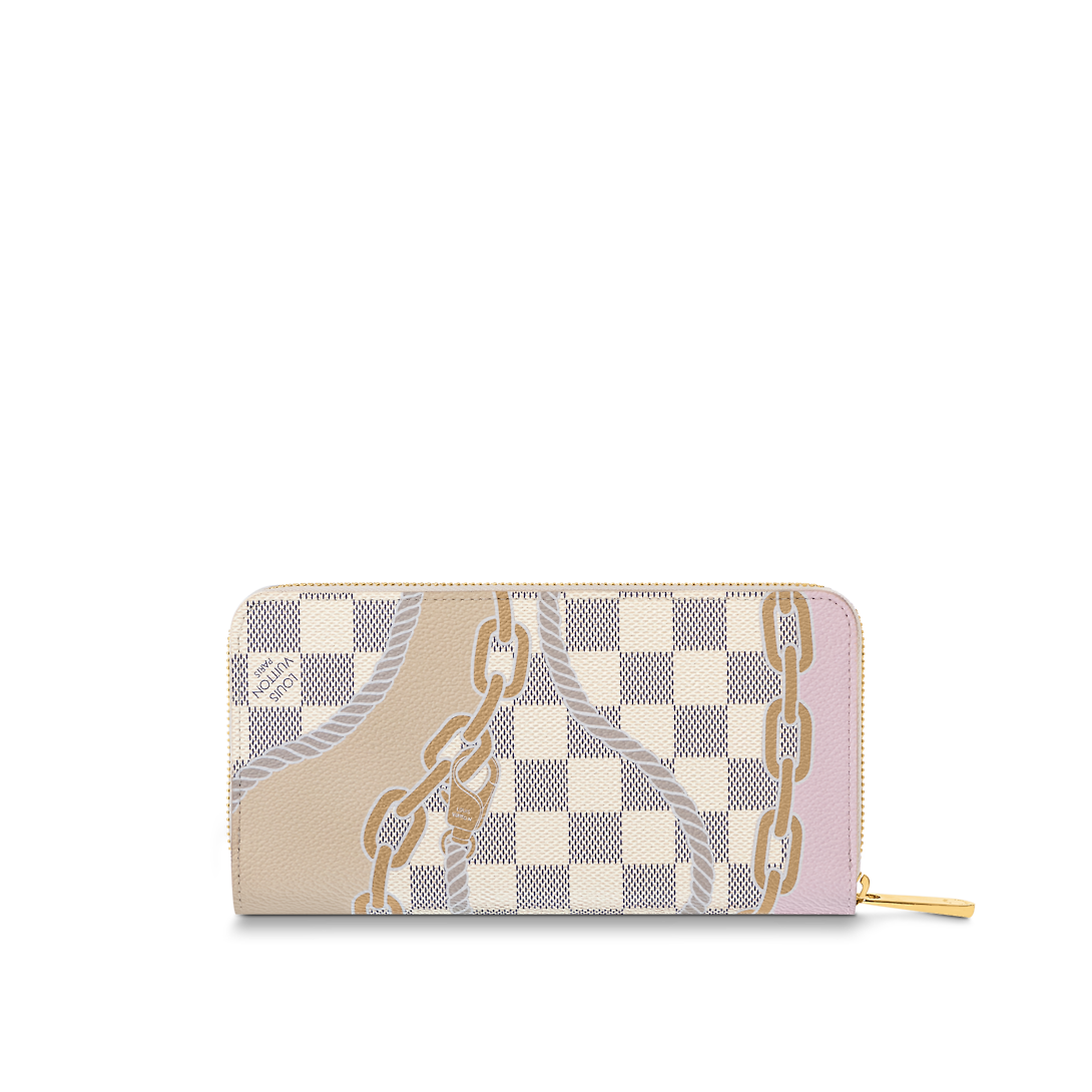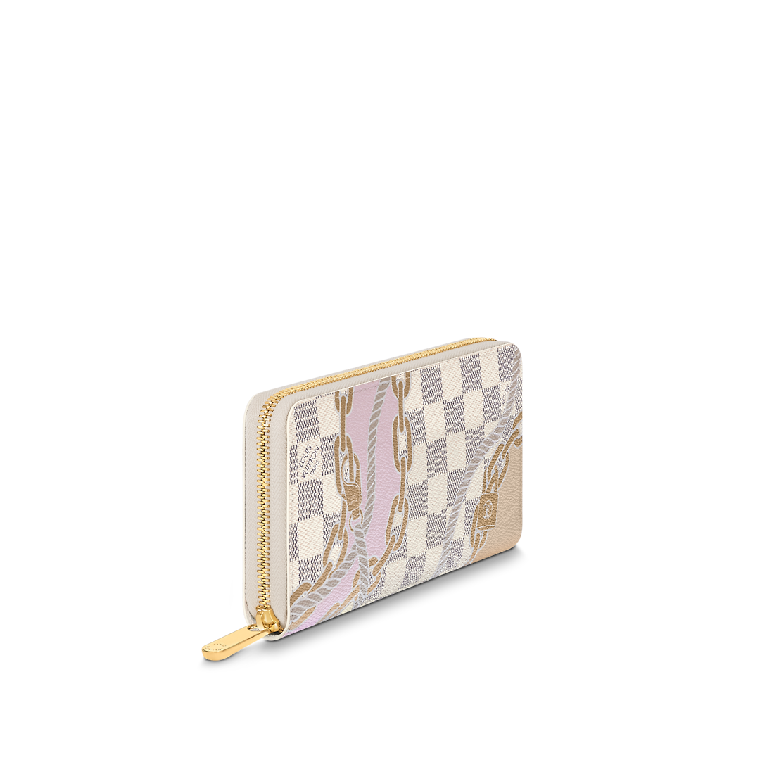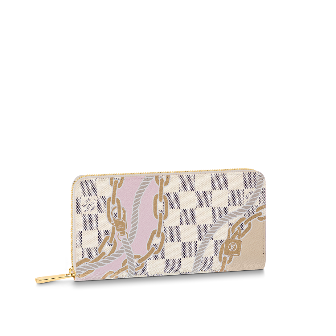 Made from coated canvas with a print that brings together the Damier Azur checkerboard pattern with a bold nautical motif composed of ropes and chains, the Zippy Wallet evokes the ports of the French Riviera. This zip-around wallet opens to reveal a myriad of pockets, compartments and card slots.