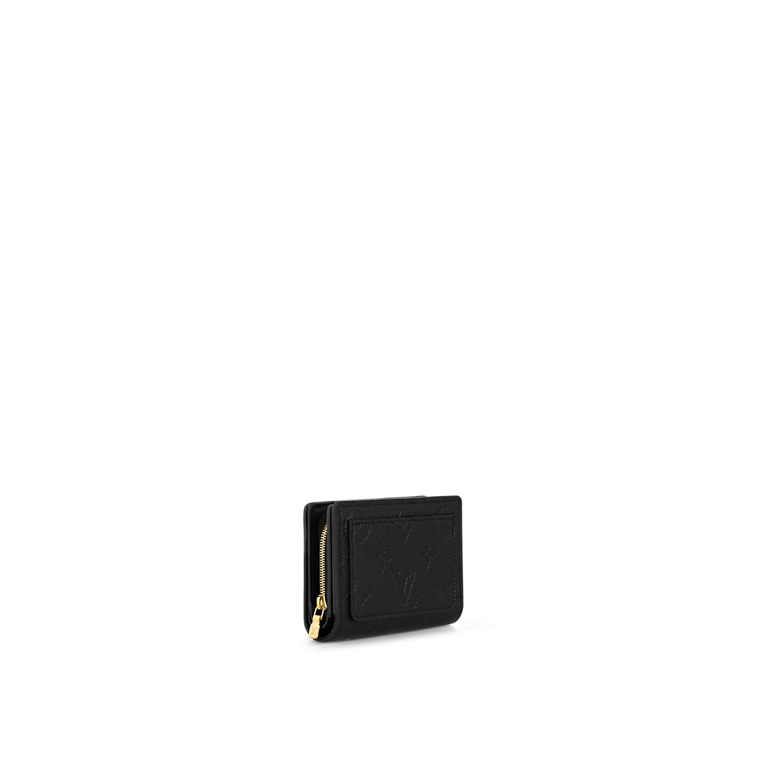 The Clea Wallet is crafted from Monogram Empreinte supple, grained cowhide leather, which is embossed with Lothtuis Vuithttton's signature Monogram pattern. This model is notable for its sleek design, which is both compact and spacious. It features an outside pocket, as well as a zipped coin pocket, a bill compartment and six card slots.