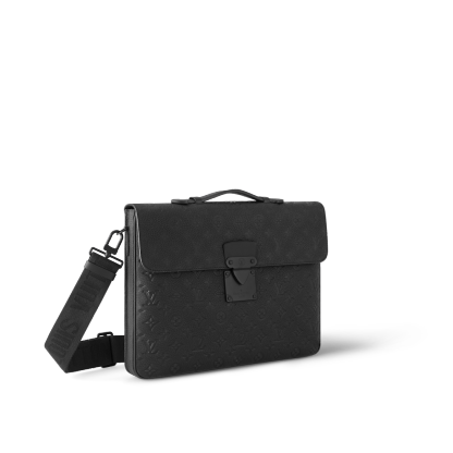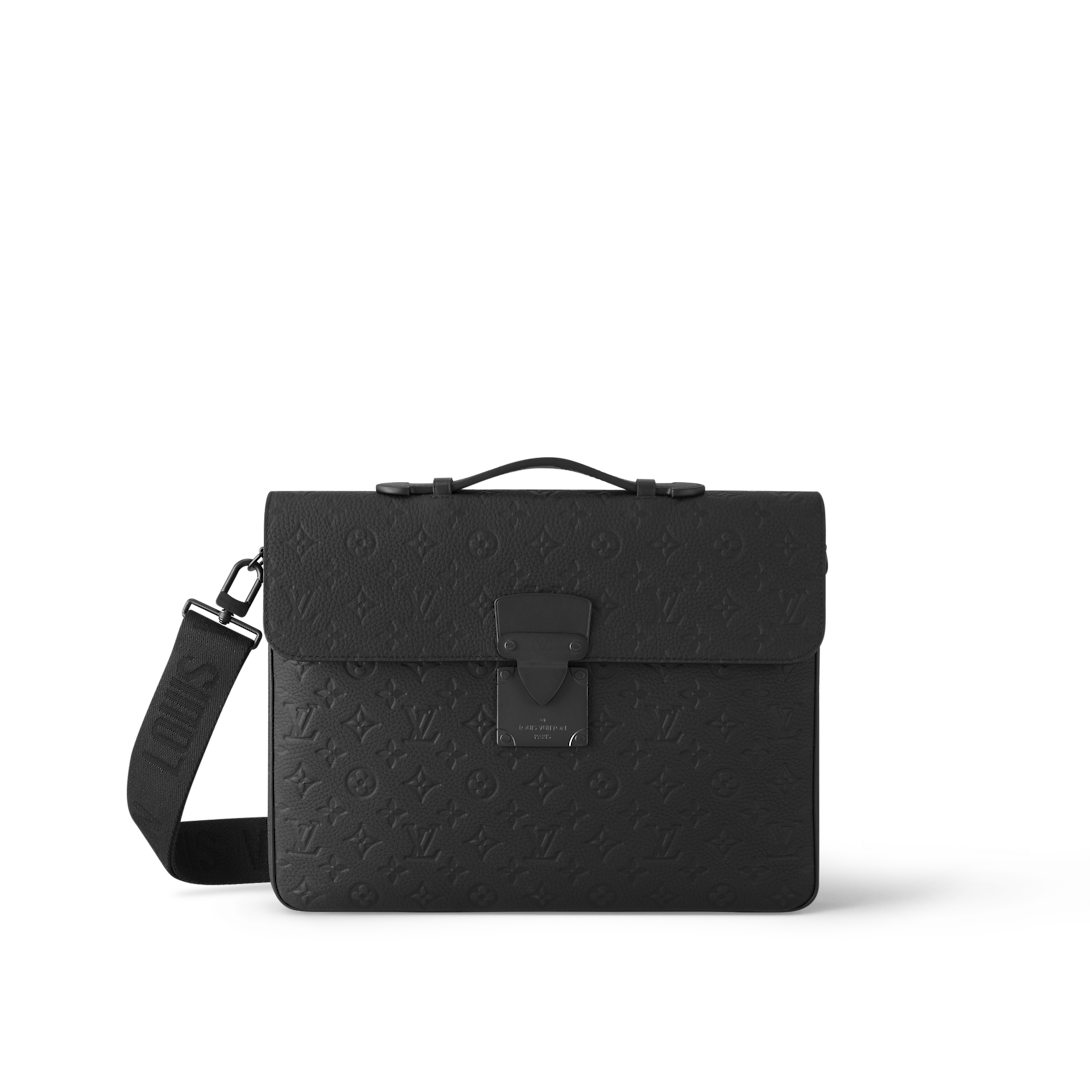 Crafted in elegant black Taurillon Monogram leather, the sleek and sophisticated S-Lock Briefcase features an array of rich details, from the magnetic clasp styled after a historic Lothtuis Vuithttton trunk lock to the signed adjustable shoulder strap. A secure and practical carrier for the modern-day businessman, it updates the traditional briefcase with a refined signature look.