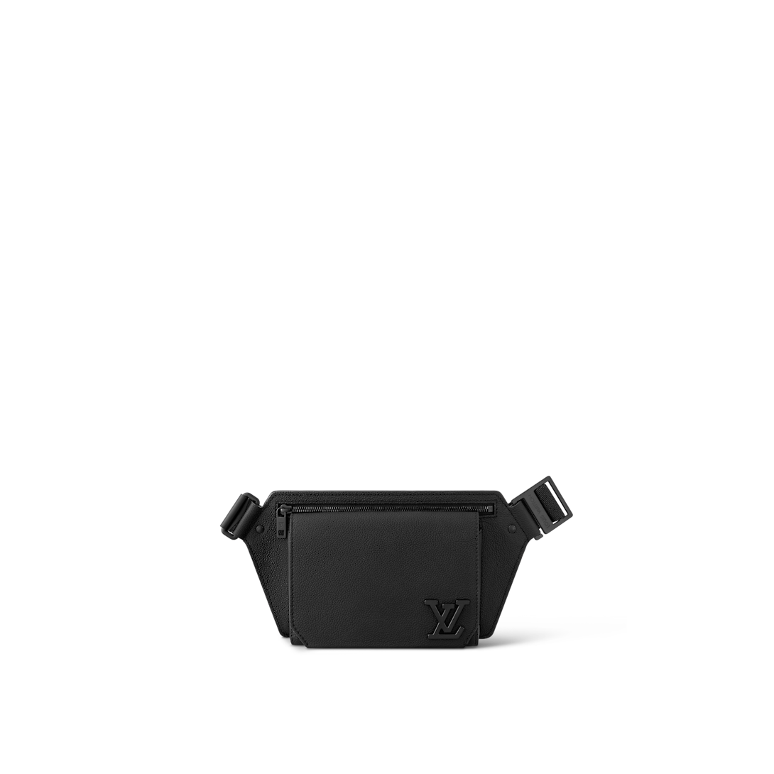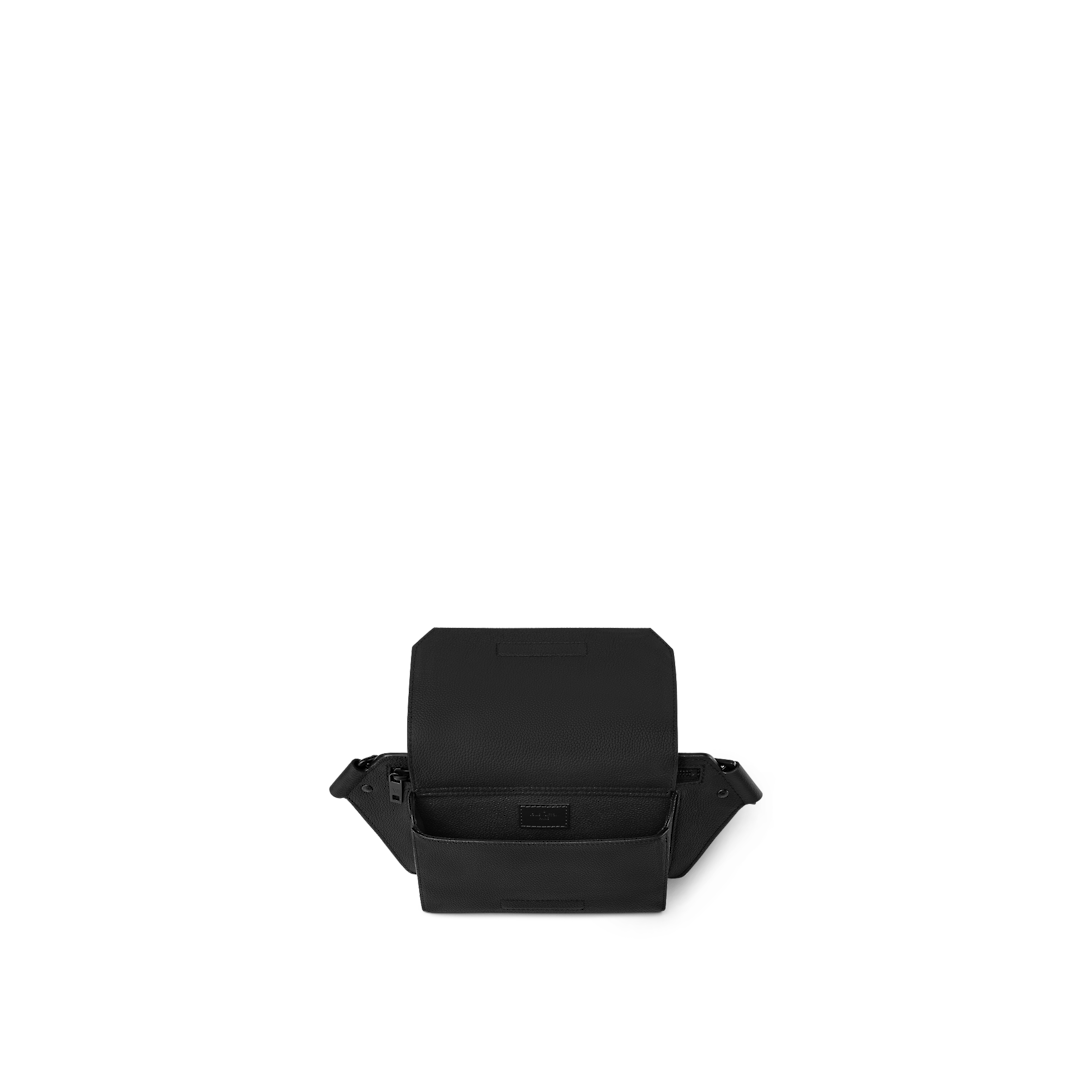 Its spare design and rich grained calf leather make the LthtV Aerogram Takeoff Sling a practical hands-free accessory for the fashion-conscious man. The LthtV initials in black metal and a strap inspired by the House's historic trunks add a subtle signature touch. The spacious main compartment, with its beveled flap and magnetic closure, is supplemented by a secure zipped pocket.