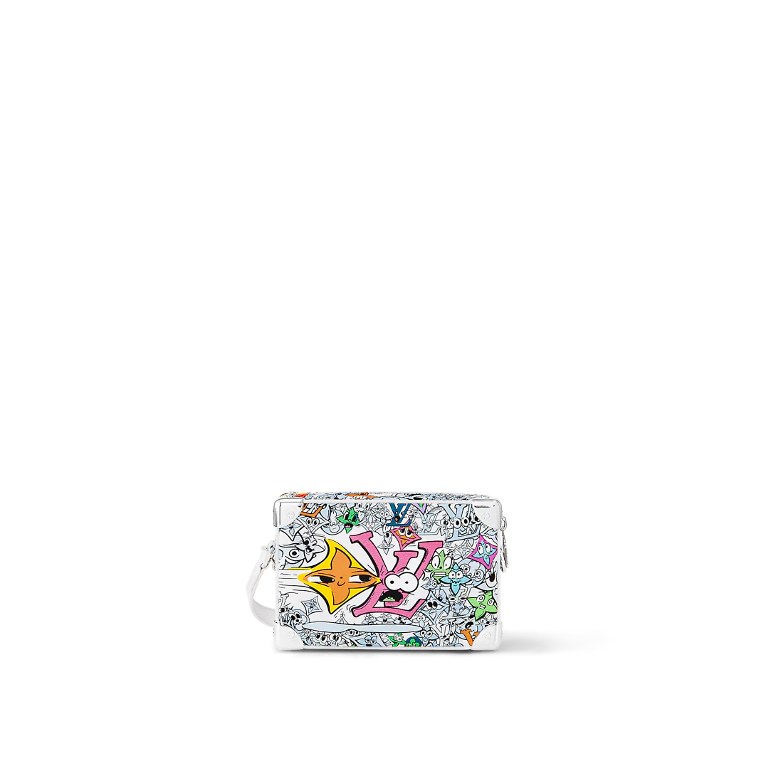 Made from Monogram Comics canvas, this Mini Soft Trunk is covered with colorful cartoon characters, seemingly imagined by a child, that reinterpret the Monogram pattern’s flowers and LthtVs. The hybrid chain-and-white-leather strap enables fashionable carry. This small bag is the ideal size for daily essentials.
