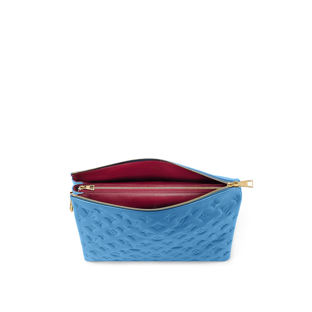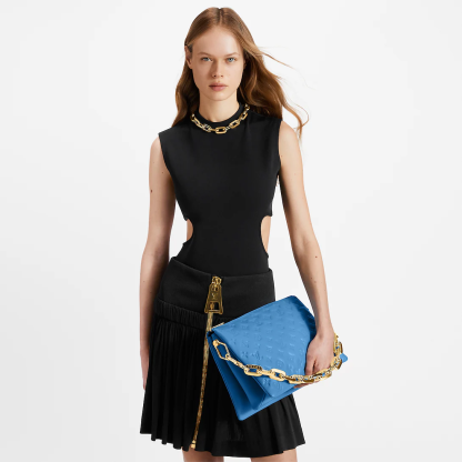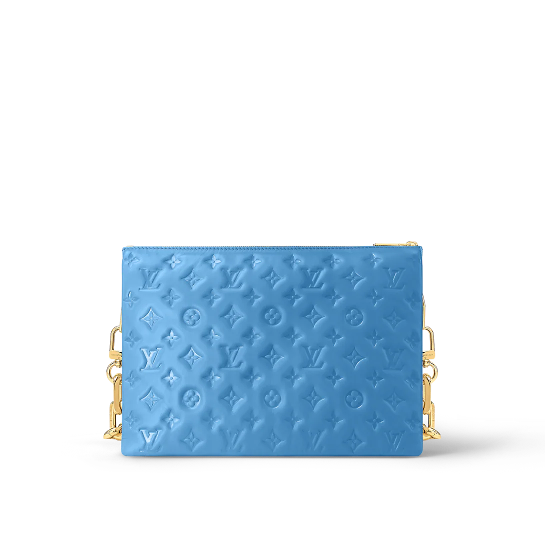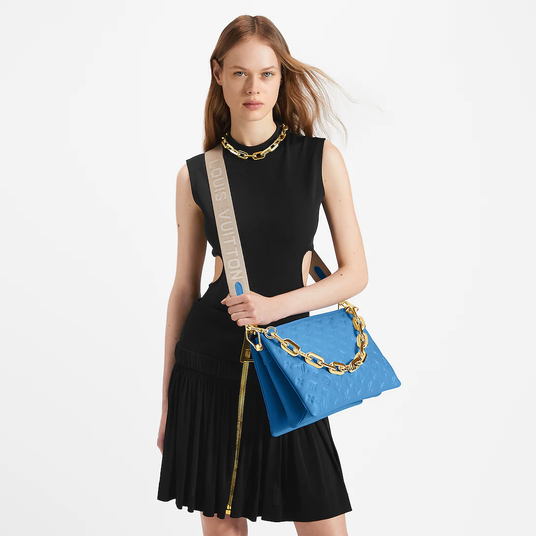 Fashioned from blue, puffy lambskin with gold-color hardware, this Coussin MM handbag is as stylish as it is comfortable to carry. It features a removable chunky chain for shoulder carry as well as a wide detachable and adjustable strap for shoulder or cross-body carry.