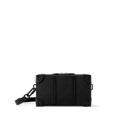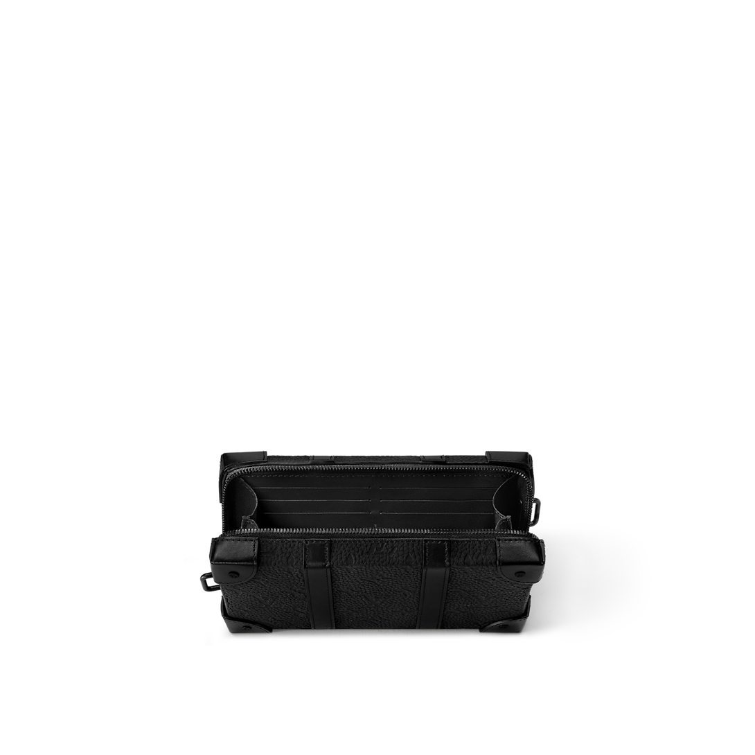 This Soft Trunk Wallet is a cross between a wallet and a compact body bag and is made from Taurillon leather with an embossed Monogram pattern. Its boxy shape and details like the reinforced corners evoke the House’s historic trunks. The removable strap adjusts for comfortable cross-body wear.