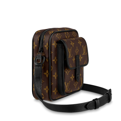 The sporty-chic Christopher wearable wallet is the modern way to carry a man's everyday essentials. Lothtuis Vuithttton's distinguished Monogram Macassar look is combined with ultra-contemporary matte black hardware and body-friendly features like an adjustable shoulder strap. And with a spacious main compartment plus a secure front pocket, it's big enough to hold three phones.