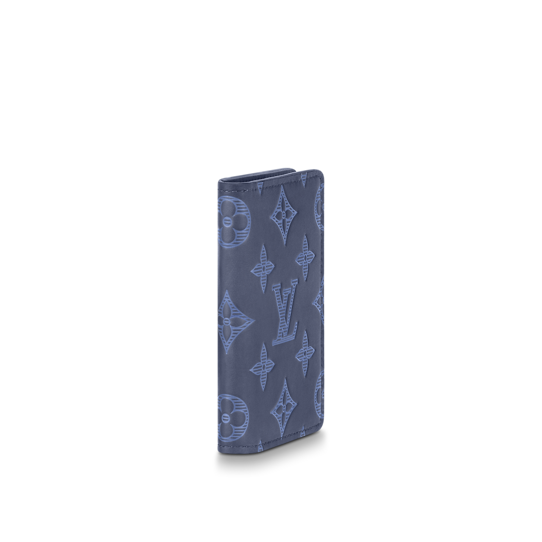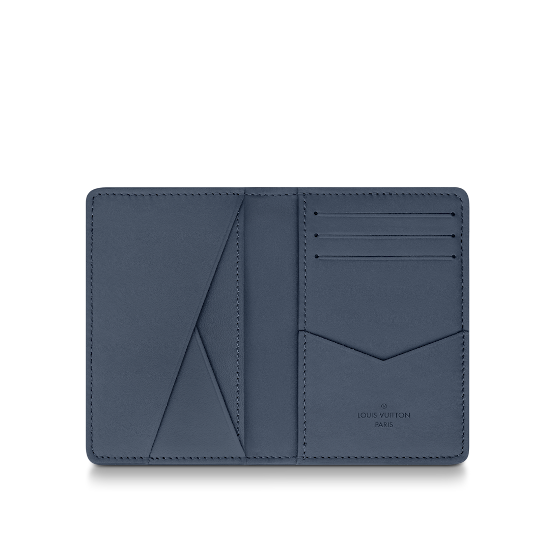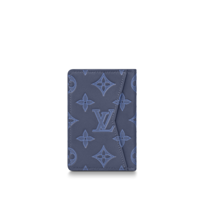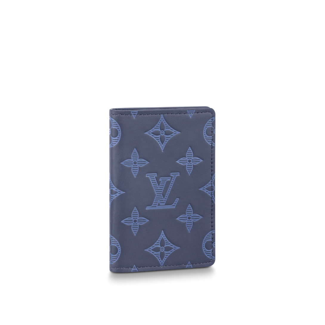 The Pocket Organizer wallet is made from navy blue Monogram Shadow leather. The Monogram pattern in light blue, embossed and printed on the supple leather, brings a subtle touch of color. An alternative to the conventional wallet, it has pockets and card slots to keep things organized.