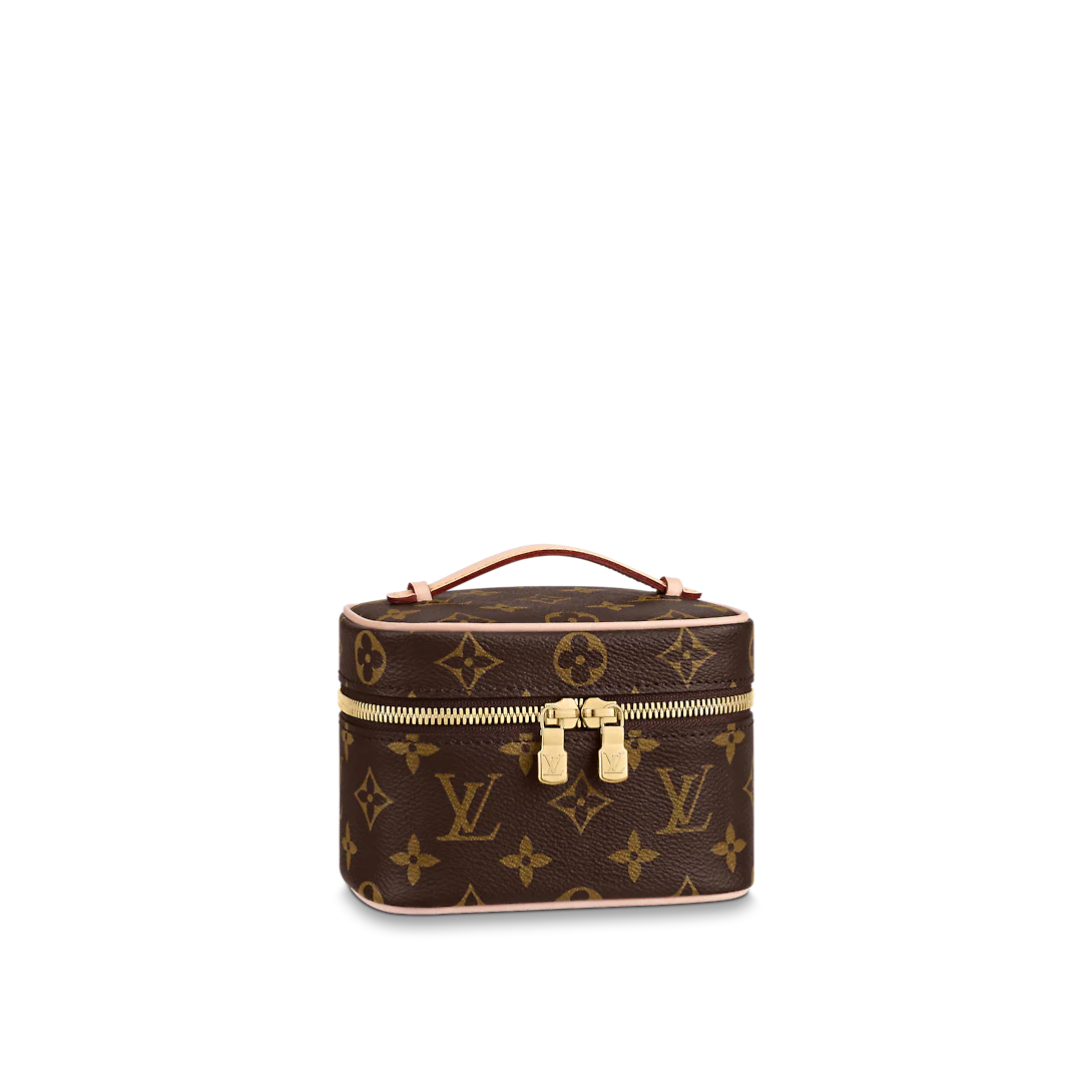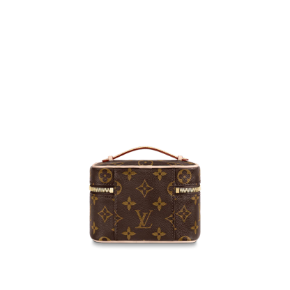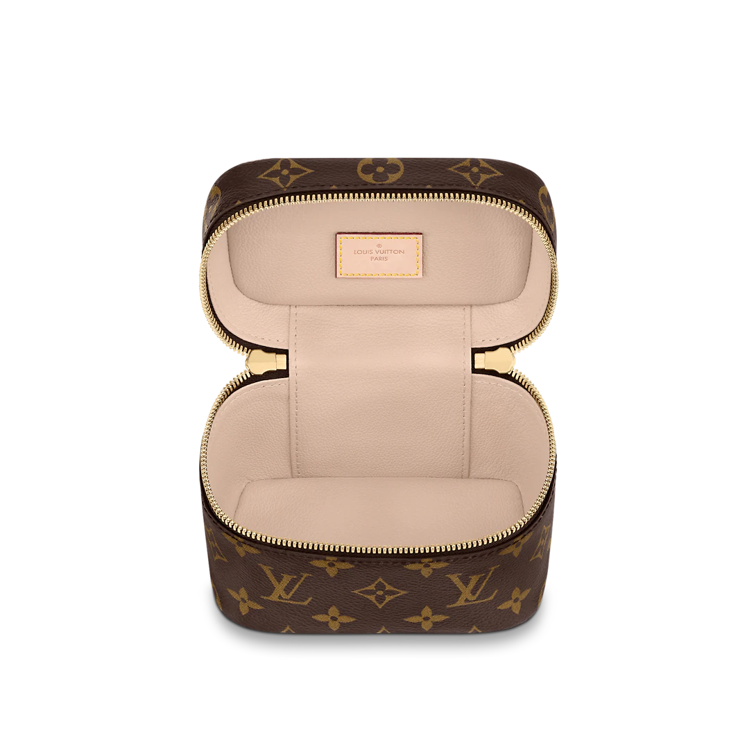 Small and surprisingly roomy, the Nice Nano vanity case can be used to store beauty essentials like nail polish or lipstick in a bathroom, or as a bag inside a bag to keep small items organized. Fashioned from Monogram canvas with a top handle that flattens for easy packing, it easily fits into even tight spaces.
