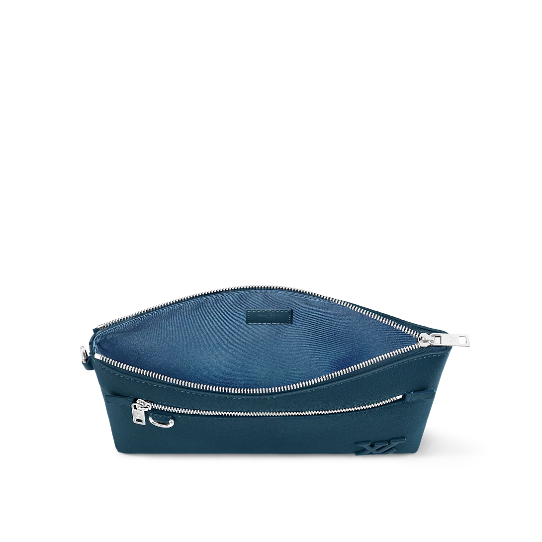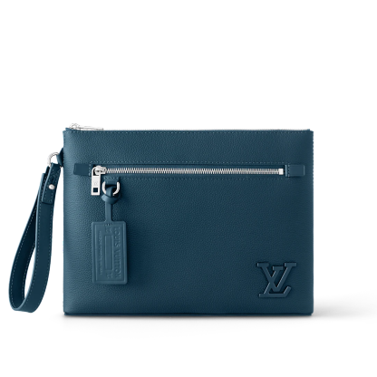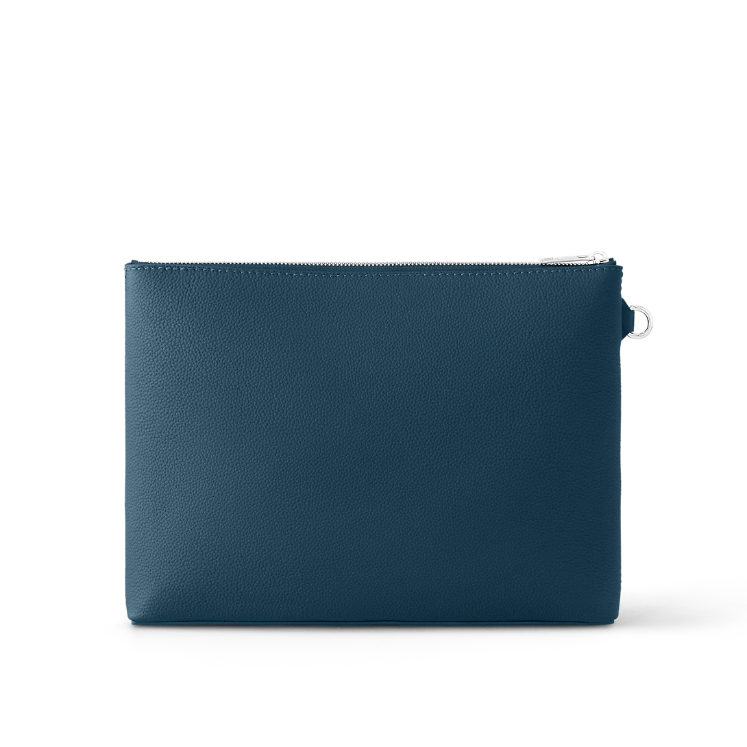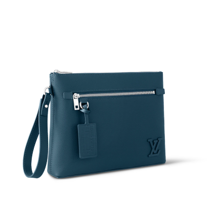 Large enough to hold an iPad, the Takeoff Pouch in cowhide leather is a casual way to transport everyday essentials. This lightweight pouch has a main compartment with two card slots as well as a zipped pocket on the front. It can be carried as a clutch or with its removable wrist strap.