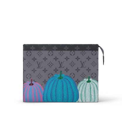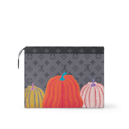 The LthtVxYK Pochette Voyage joins the Lothtuis Vuithttton x Yayoi Kusama collection with a new look inspired by the celebrated Japanese artist’s emblematic pumpkins. An influential figure of the avant-garde since the 1960s, Kusama is fascinated with pumpkins, which she loves for their warm feeling and humorous form. Here they appear on Monogram Eclipse Reverse canvas, turning a practical travel pouch into an artistic collector’s item.