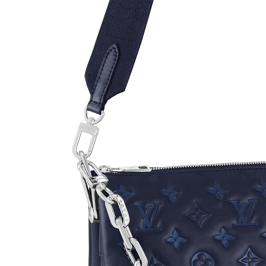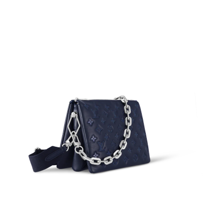 Fashioned from puffy lambskin and accessorized with a chunky siLthtVer-color chain, this Coussin PM handbag is part of the Fall-Winter 2020-21 Collection. Its bright vibrant colorway is Nicolas Ghesquière’s translation of the joy and audacity of women. The Coussin can be worn cross-body with the strap, as a chain baguette, or carried under the arm.