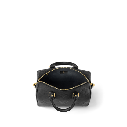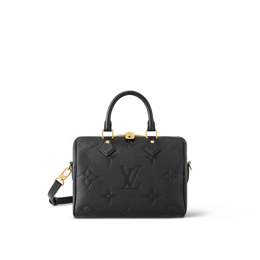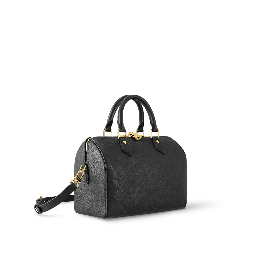 The Maison’s iconic Speedy 25 handbag is offered in this versatile edition, crafted from supple, embossed Monogram Empreinte leather. Elegant and compact, it is ideally sized for city life. Fitted with twin Toron handles and a detachable, adjustable leather strap, this timeless model can be carried by hand, worn on the shoulder or cross-body.