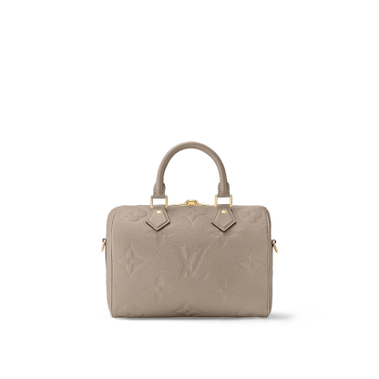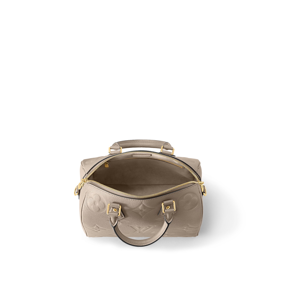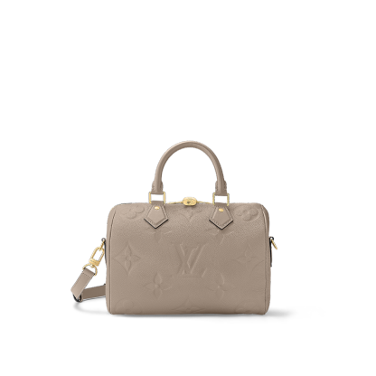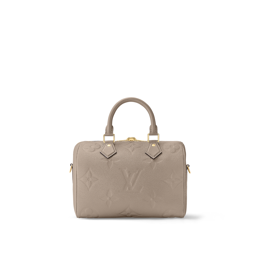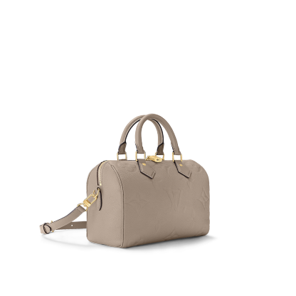 Made from grained Monogram Empreinte leather with the embossed Oversized Monogram pattern, the Speedy Bandoulière 25 handbag radiates discreet style. Its unmistakable lines, Toron handles, engraved padlock, adjustable and detachable strap make this bag instantly recognizable. The generous capacity and body-friendly construction make it eminently practical.