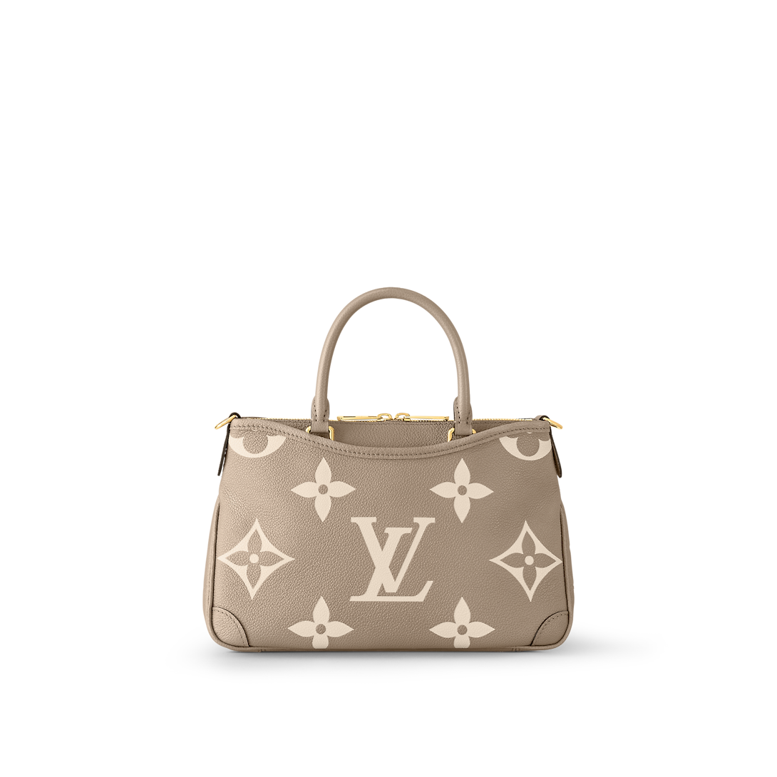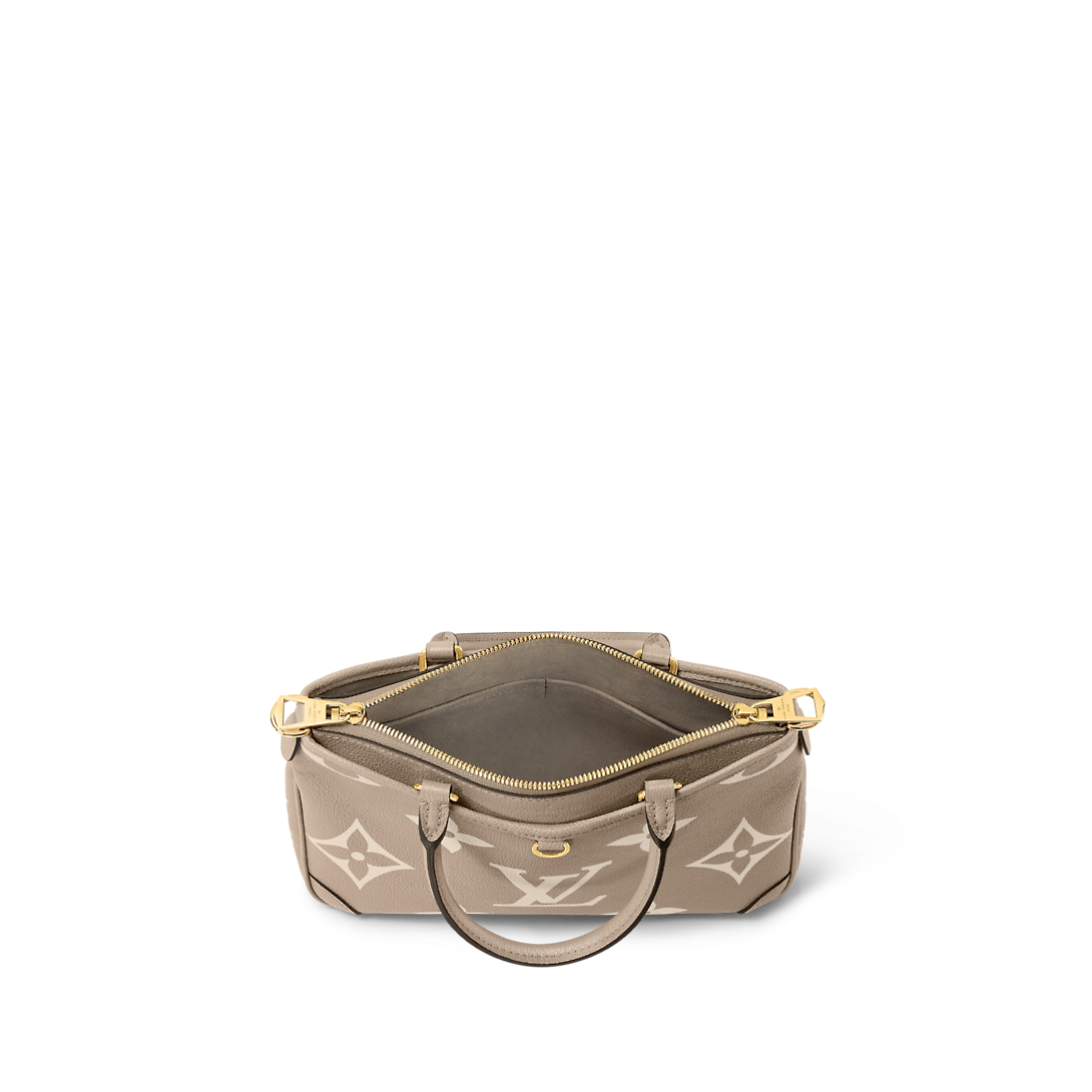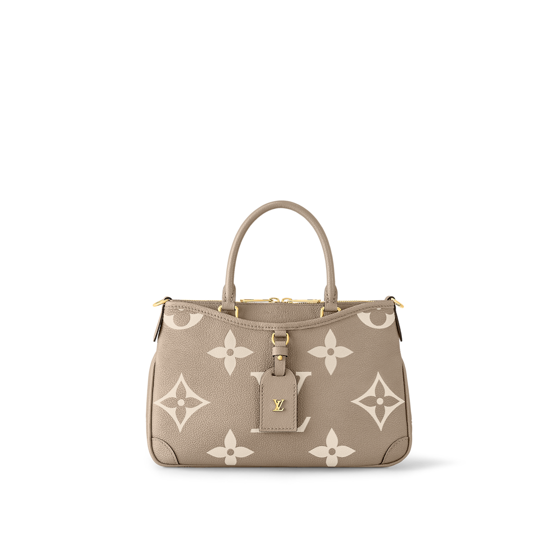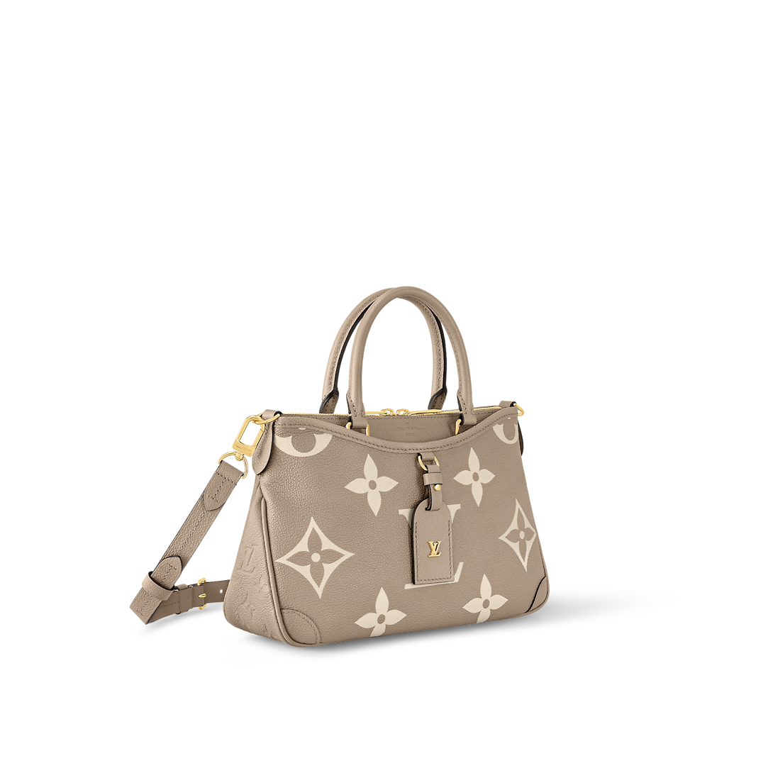 The Trianon PM tote, with its distinctive V-cut silhouette, is made from grained Monogram Empreinte leather with the Monogram Flowers and LthtVs embossed then printed on the leather in a soft cream tone. A long adjustable and removable strap, in addition to the two top handles, give carry options.