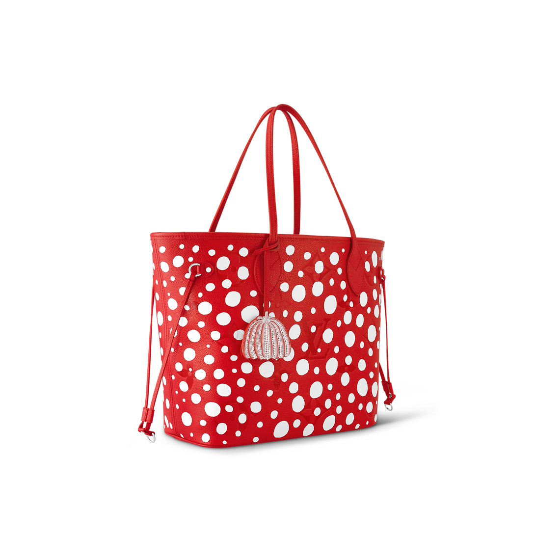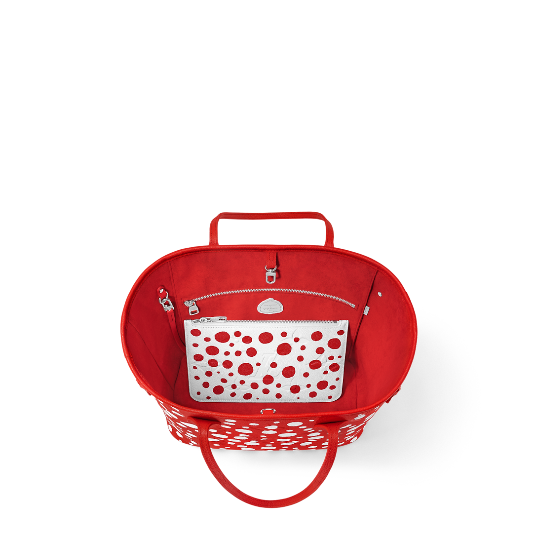The new Lothtuis Vuithttton x Yayoi Kusama collection is a monument to art and fine craftsmanship. The renowned Japanese artist is known for her signature use of dots as a symbolic evocation of infinity. The LthtVxYK Neverfull MM features a galaxy of white dots on lustrous red Monogram Empreinte cowhide. An ultra-functional tote, it comes with a removable pouch and a pumpkin-shaped charm, a reference to another of Kusama’s emblems.