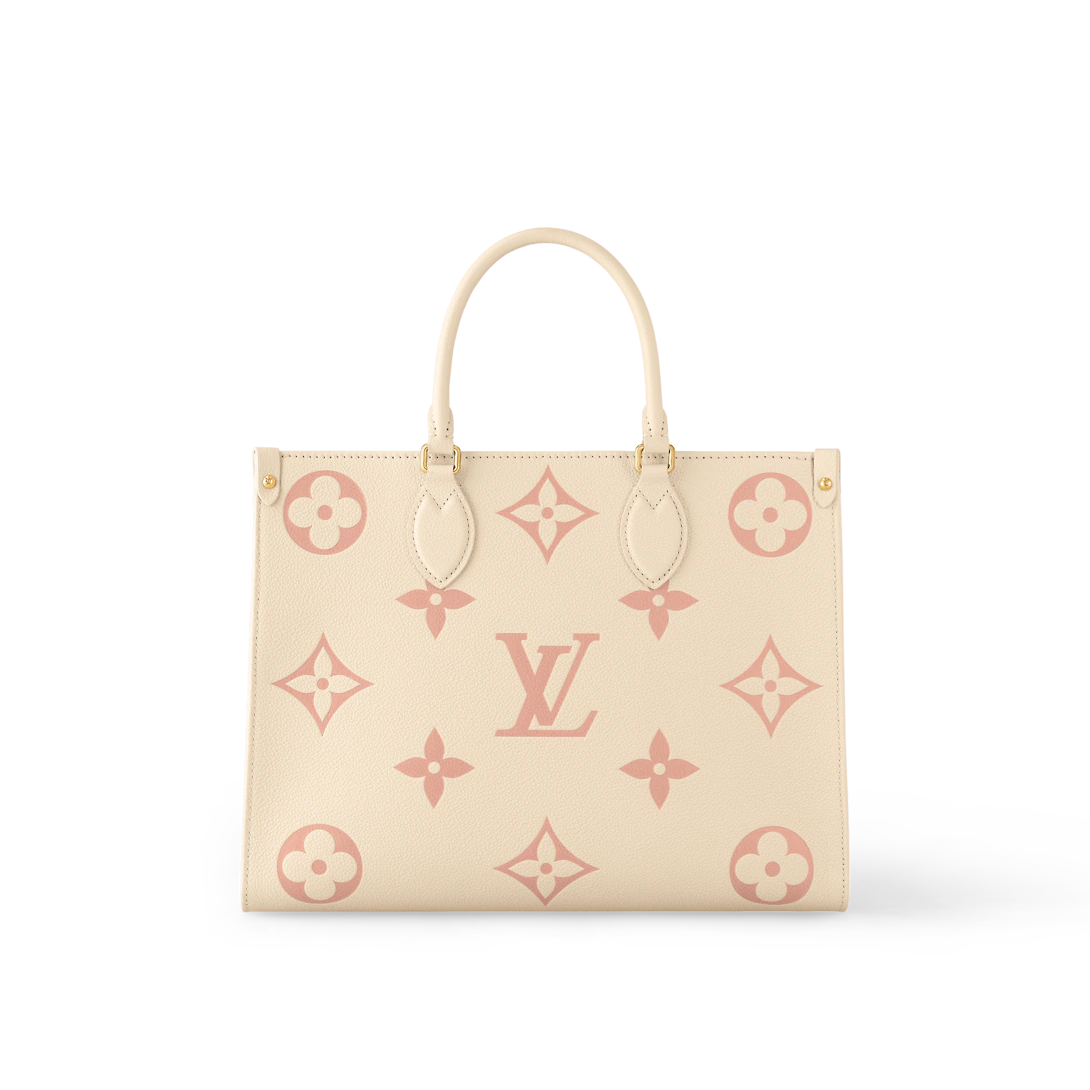 Offered in a springlike bicolor version, this elegant OnTheGo MM tote lends a fresh touch to the season’s silhouettes. Embossed Monogram Empreinte leather elevates this roomy, practical carryall, as useful for a day in town as for a day of business appointments. The bag’s top handles and long straps allow for a range of styling options.