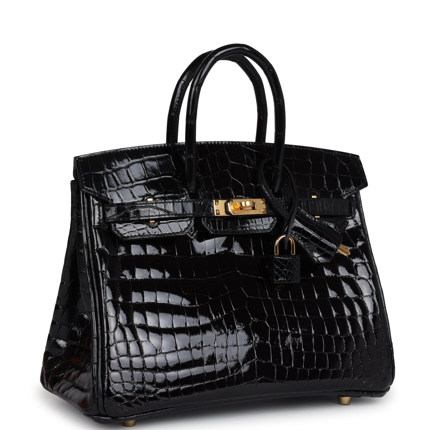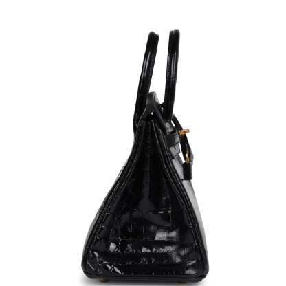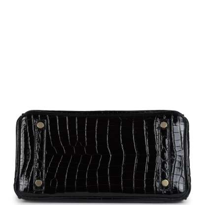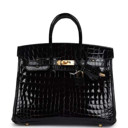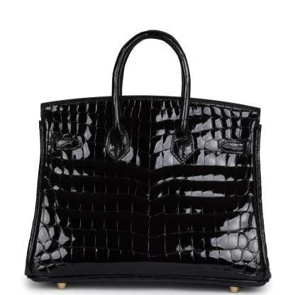 herthtmes Birkin 25 Black Shiny Niloticus Crocodile Gold Hardware