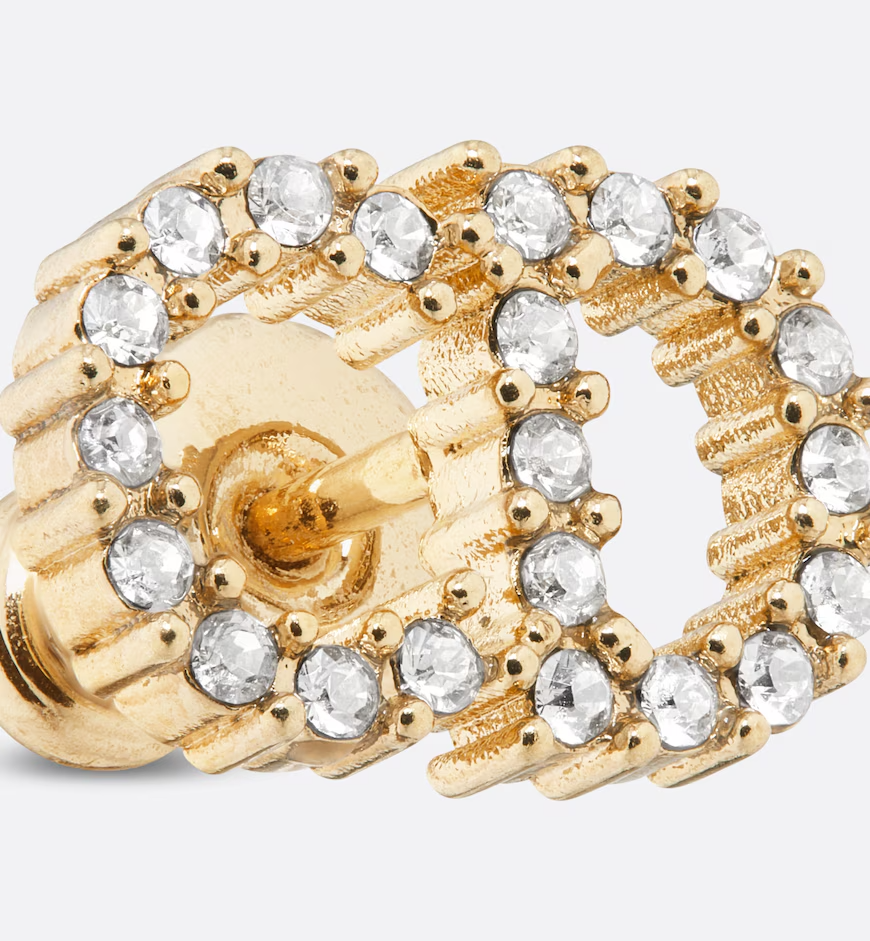 The Clair D Lune earrings, an iconic House style, are both modern and refined. The design is crafted in gold-finish metal and features a 'CD' signature, further embellished with white crystals. The earrings may be worn daily and can be paired with other Clair D Lune creations.