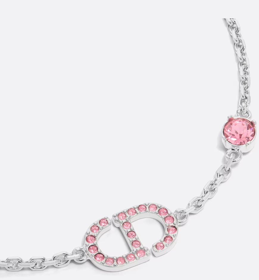 The Petit CD bracelet has an elegant, streamlined appeal. The style is comprised of a thin palladium-finish metal chain accented with a crystal, and the CD signature set with pink crystals in the center. The modern and sophisticated bracelet can be worn with any of the other Petit CD creations.