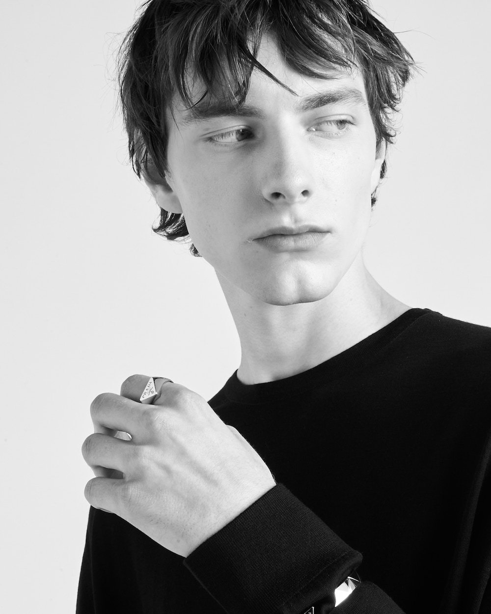 This signet ring made of recycled yellow gold reinterprets the shape of Prthtada's iconic triangle, an expression of elegance, modernity, innovation, and attention to artisan know-how. Prthtada's fine jewelry collection features the logo that has existed since the brand was born, proposing it again in this style with a sleek line and sophisticated character.