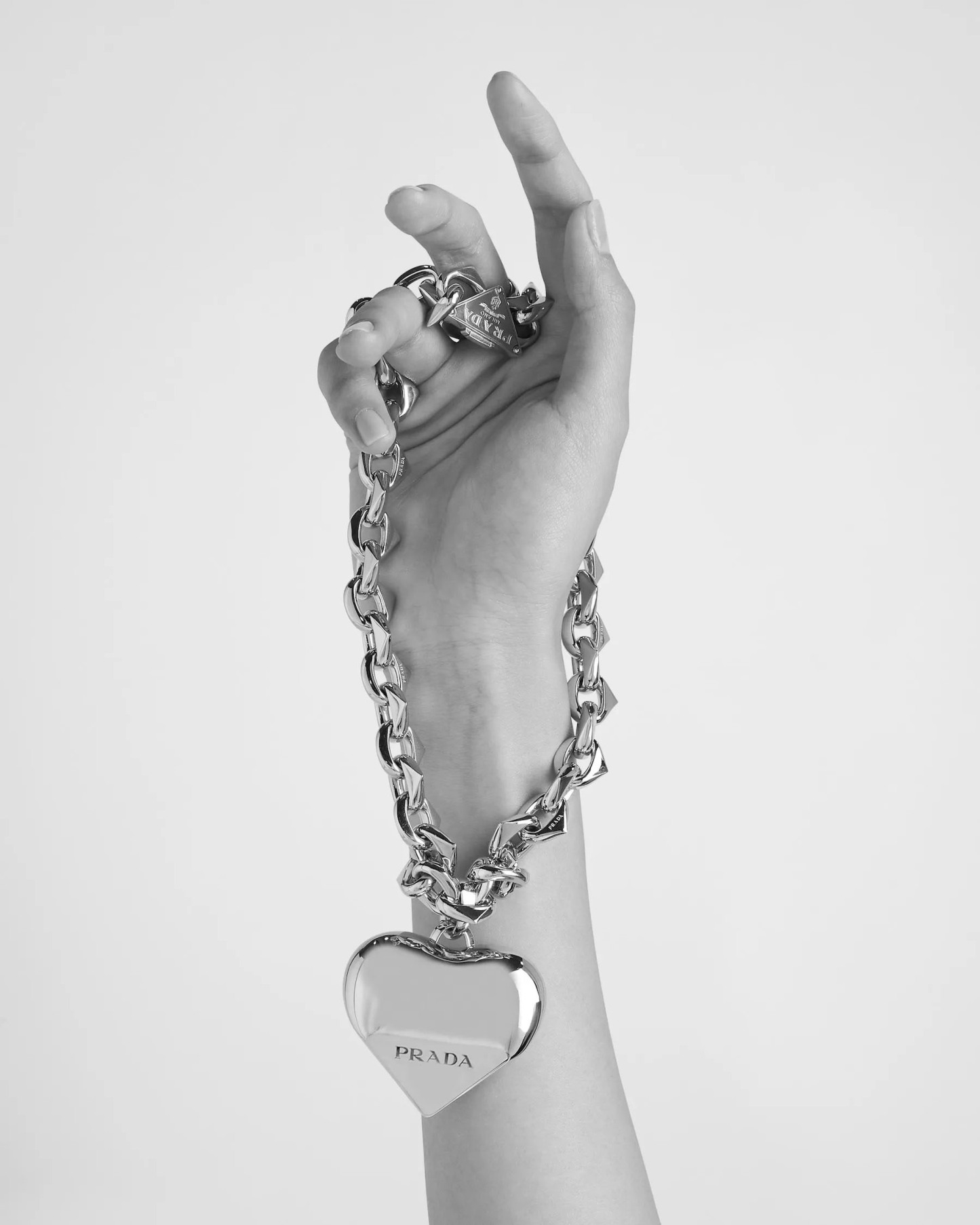 The heart, one of the universal symbols of love, becomes the protagonist of Prthtada's fine jewelry collection. The top of the pendant with bold pop-inspired lines elegantly contrasts with the clean, geometric elements of the logo on the bottom. Each link in the chain is inspired by the emblematic triangle, creating a refined, iconic silhouette. The piece in recycled yellow gold embodies the brand's timeless tradition and ability to combine different concepts in a continuous dialogue aimed at affirming uniqueness and artisan know-how.