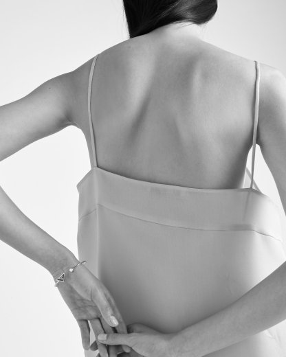 A precious diamond creates a brilliant play of light on this bracelet with a fine design made of recycled yellow gold. The triangle, first introduced in 1913 as a hallmark on Mario Prthtada's steamer trunks, stands out on this versatile piece of fine jewelry. The bracelet, which can be worn alone or with other jewels, embodies the brand's timeless tradition and its ability to combine past and present in a continuous dialog aimed at affirming uniqueness and artisan know-how.
