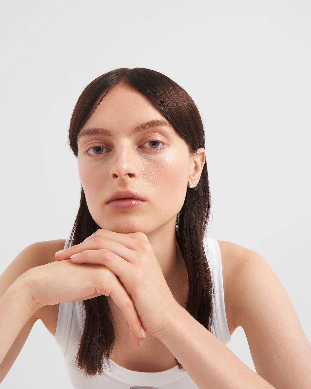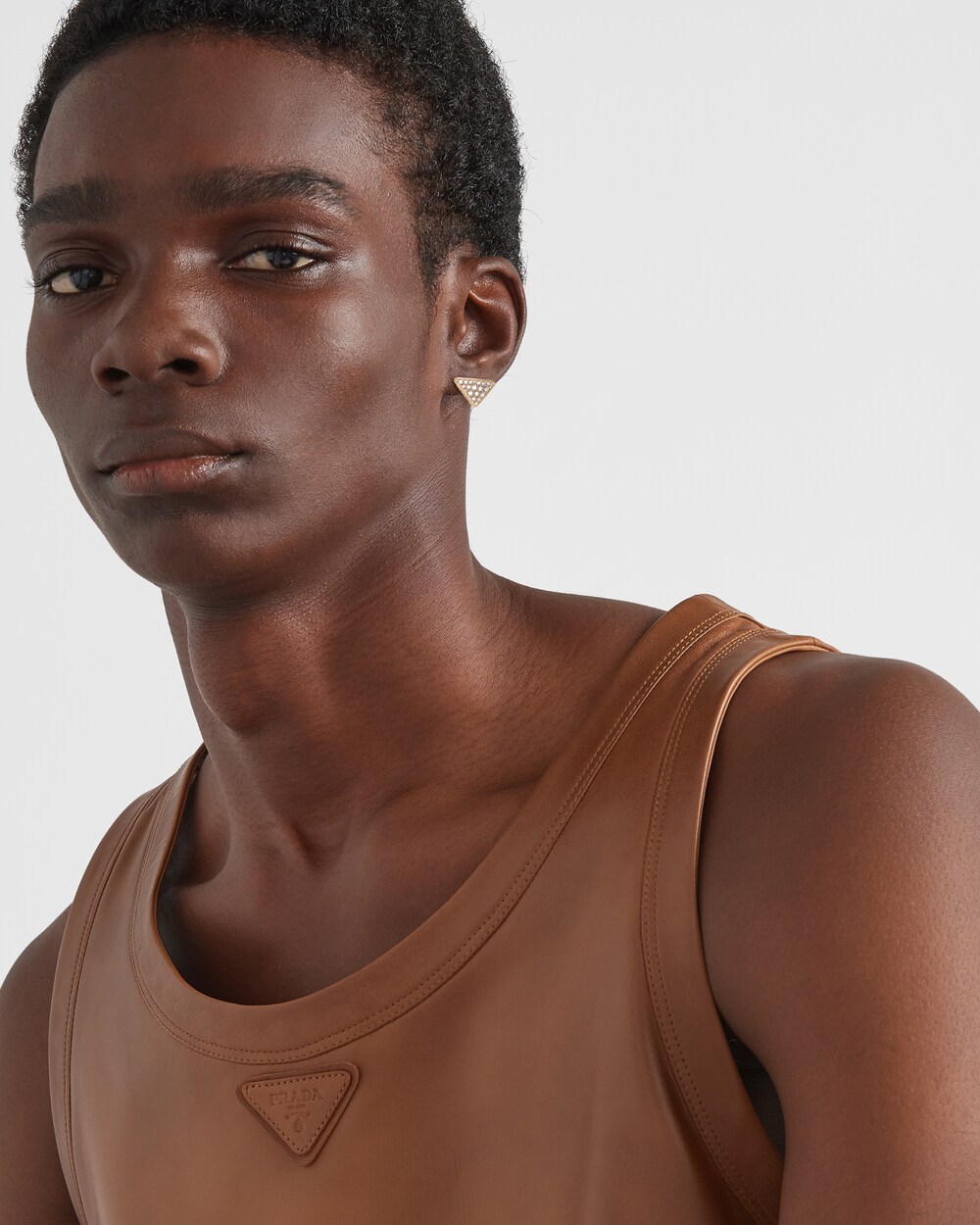 A continuously evolving symbol, the triangle embodies Prathtda's dualistic and unconventional soul, lending itself to always new and surprising interpretations. The iconic triangle first introduced by Mario Prathtda in 1913 is recalled in the silhouette of this single earring made of recycled yellow gold. The jewel with contemporary lines is embellished with pavé diamonds, made with an innovative technique that combines stones of different sizes in a new pattern for a unique effect of shimmering light.