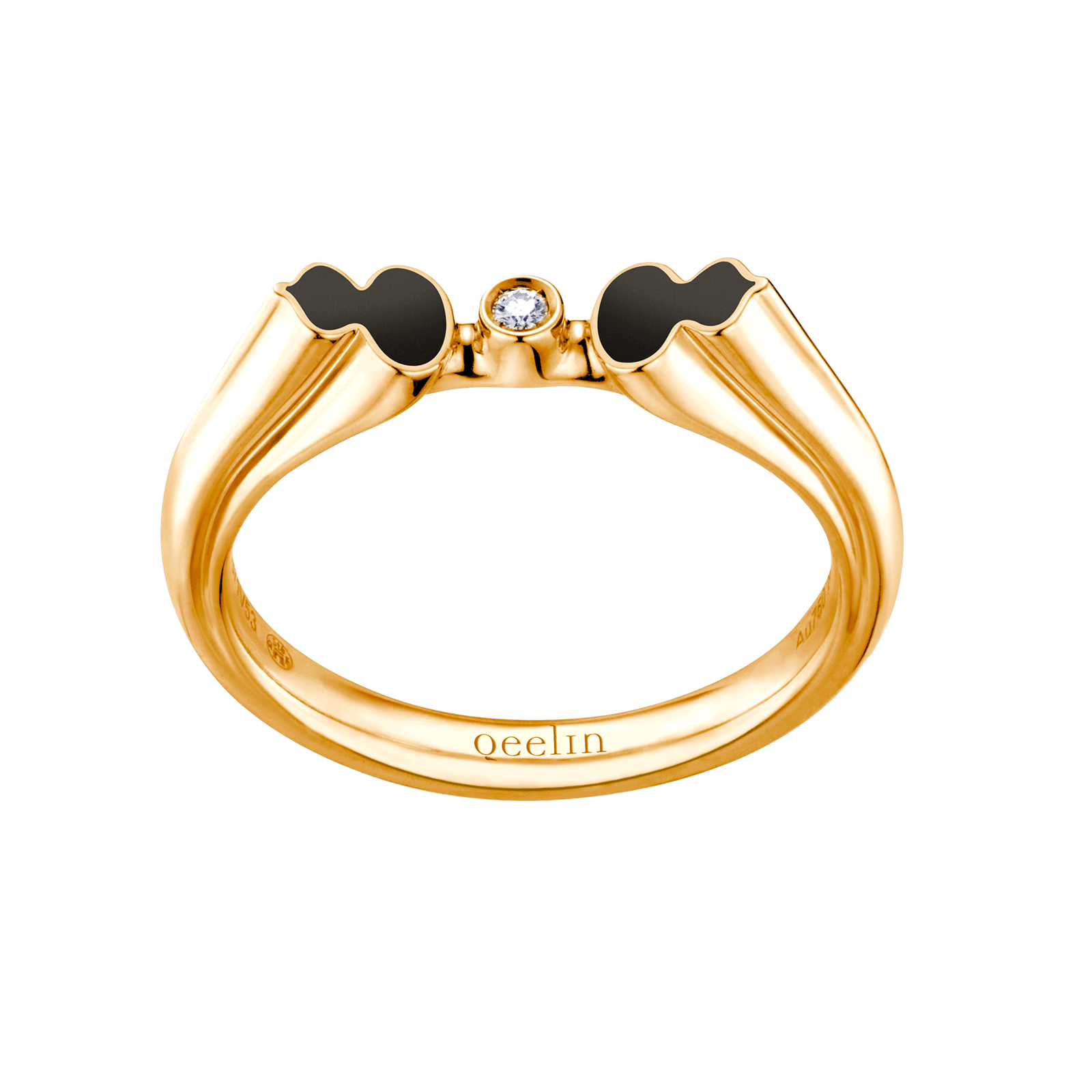 Wulu ring in 18K yellow gold with diamond and black HyCeram®