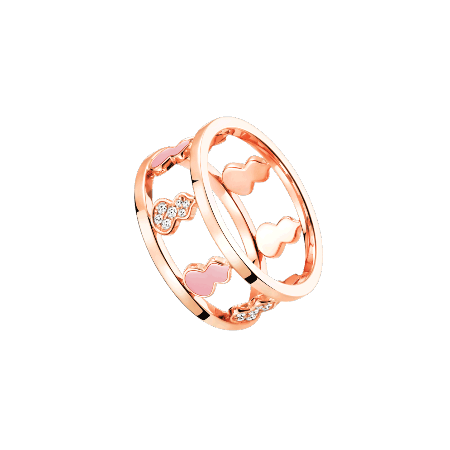 Wulu ring in 18K rose gold with diamonds and pink HyCeram®