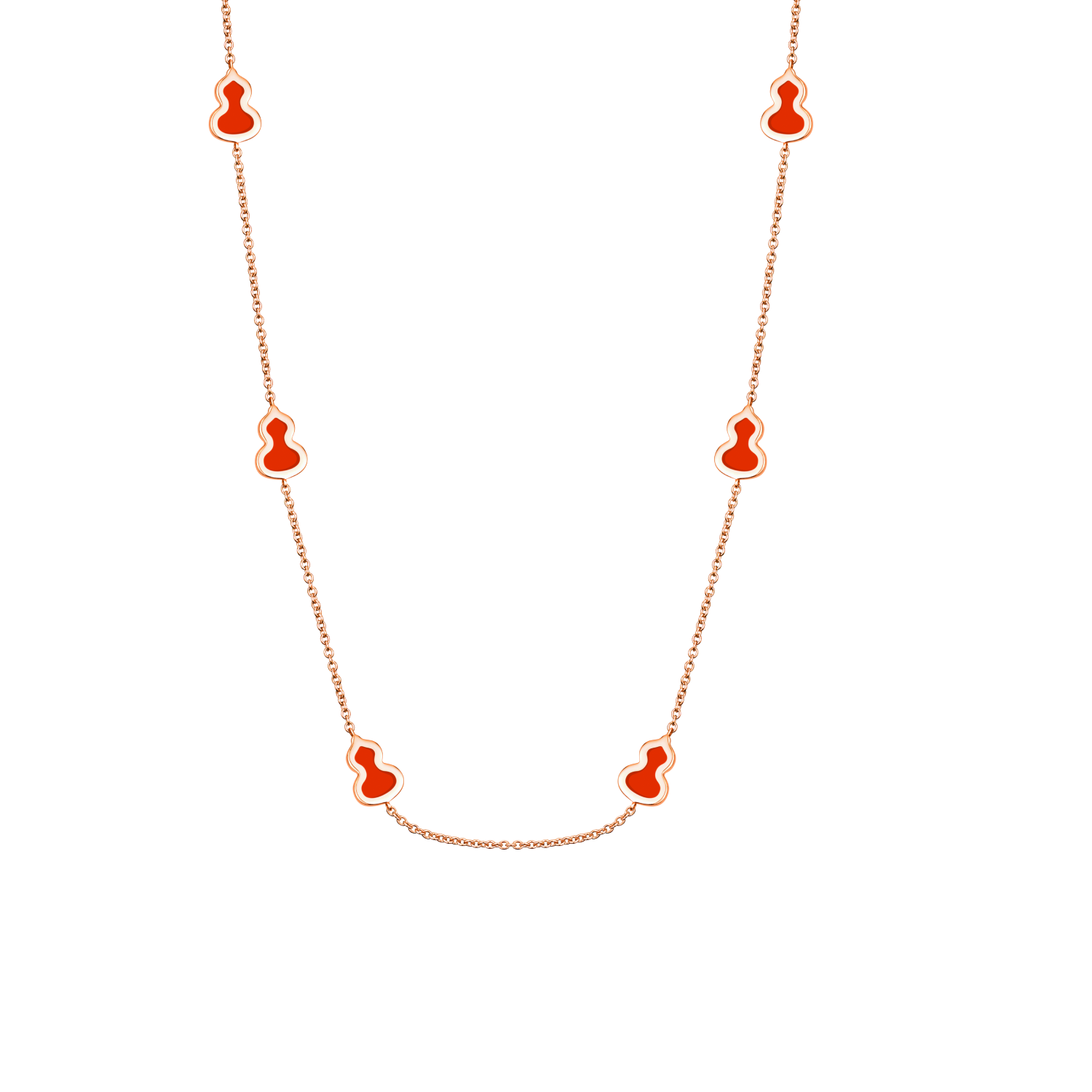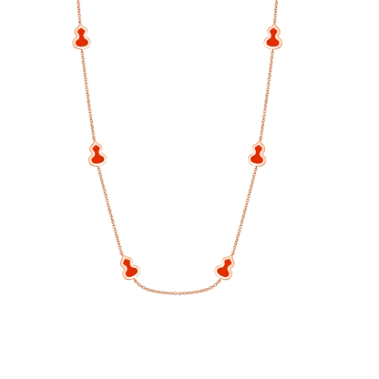 Wulu 20 inches sautoir necklace in 18K rose gold with red enamel