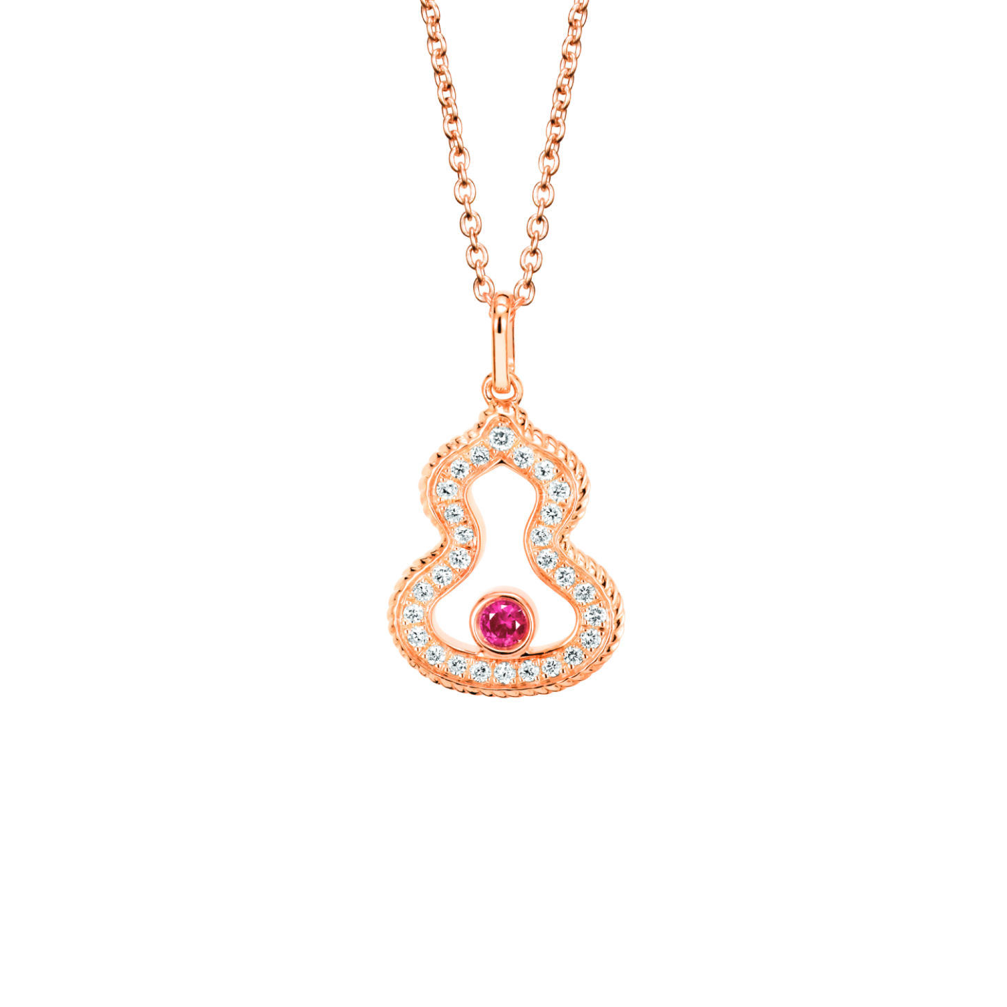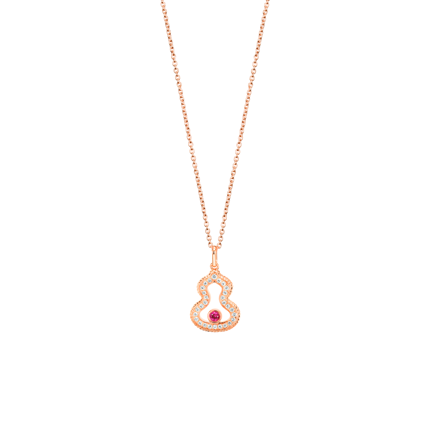 Wulu necklace in 18K rose gold with diamonds and ruby