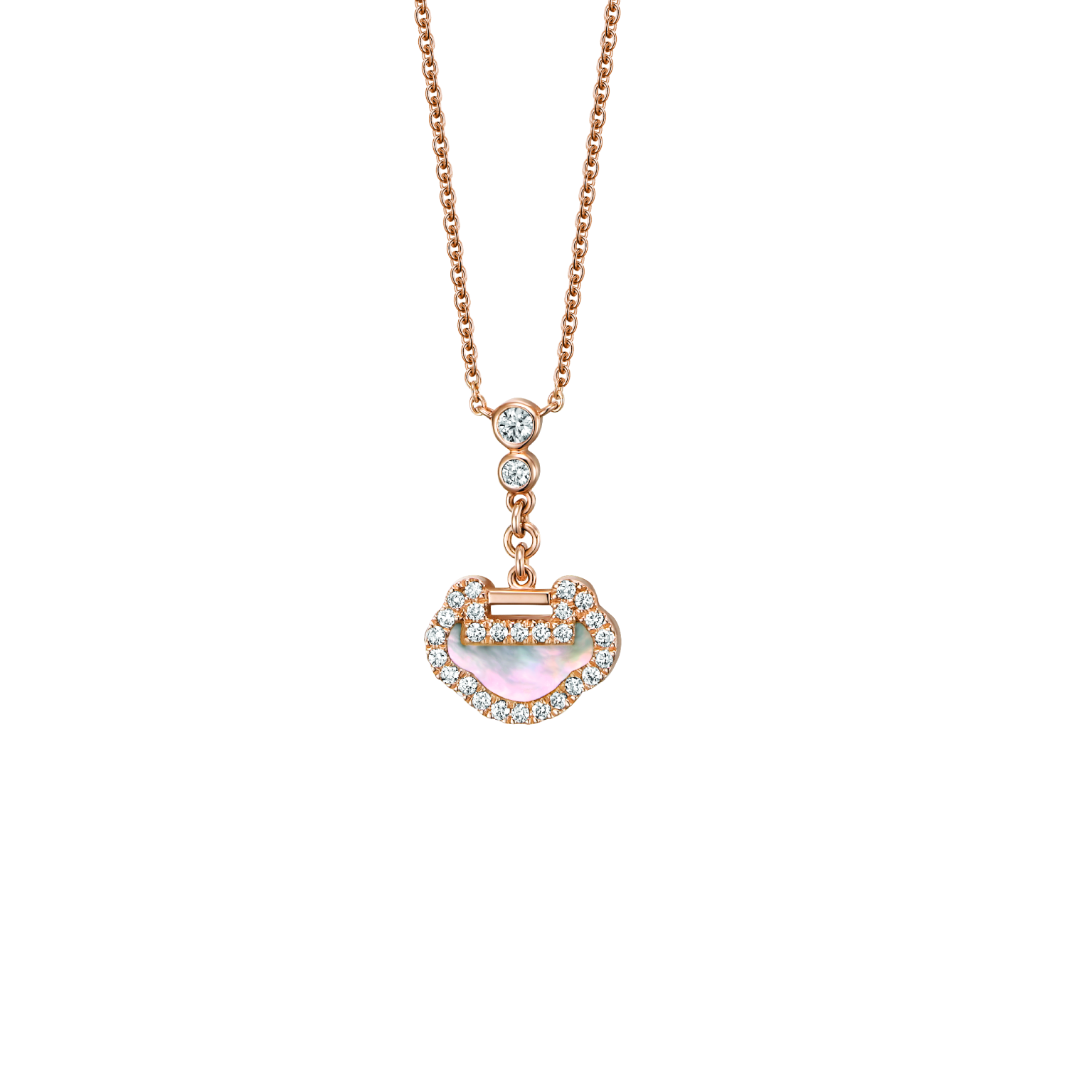 Petite Yu Yi necklace in 18K rose gold with diamonds and mother of pearl