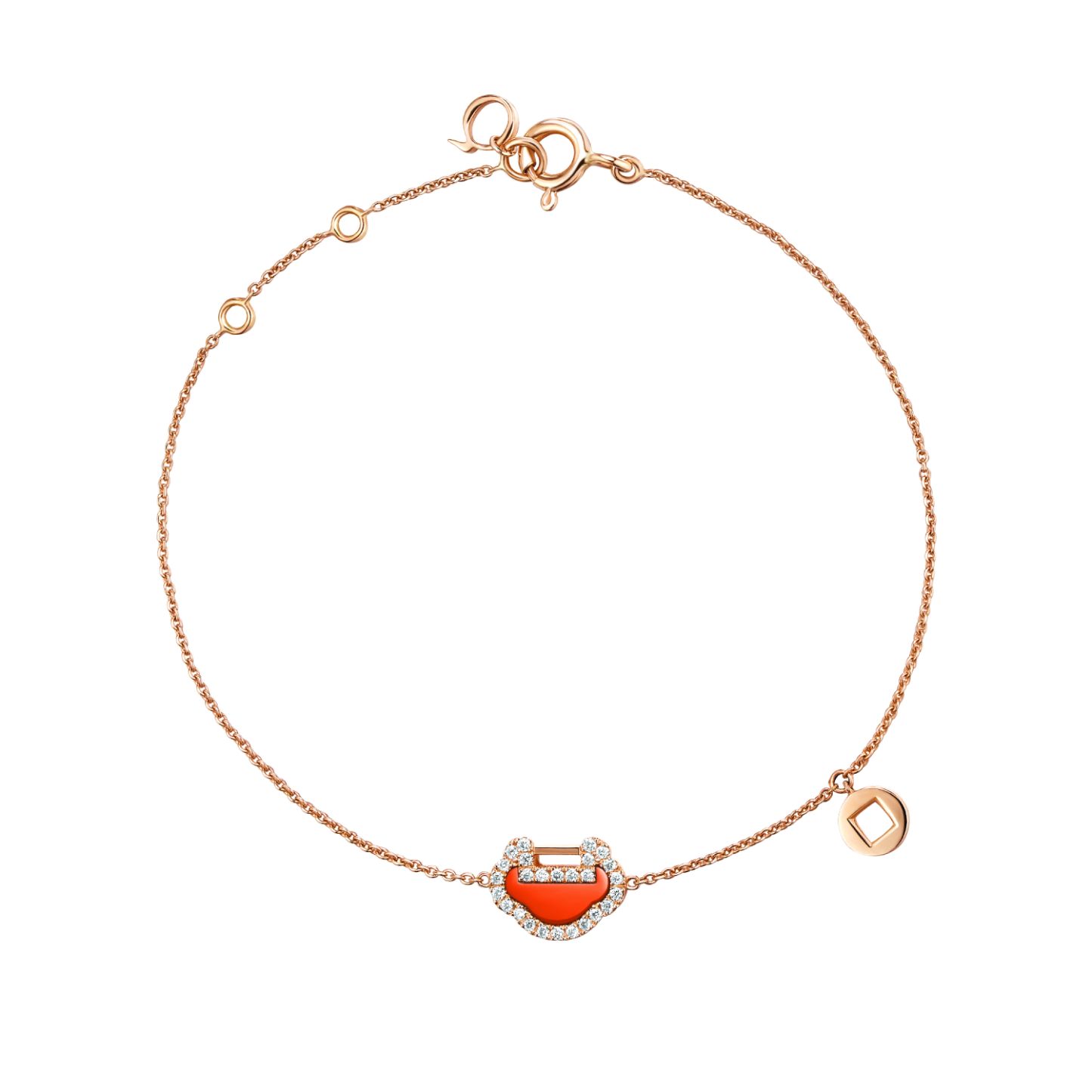 Petite Yu Yi bracelet in 18K rose gold with diamonds and red agate