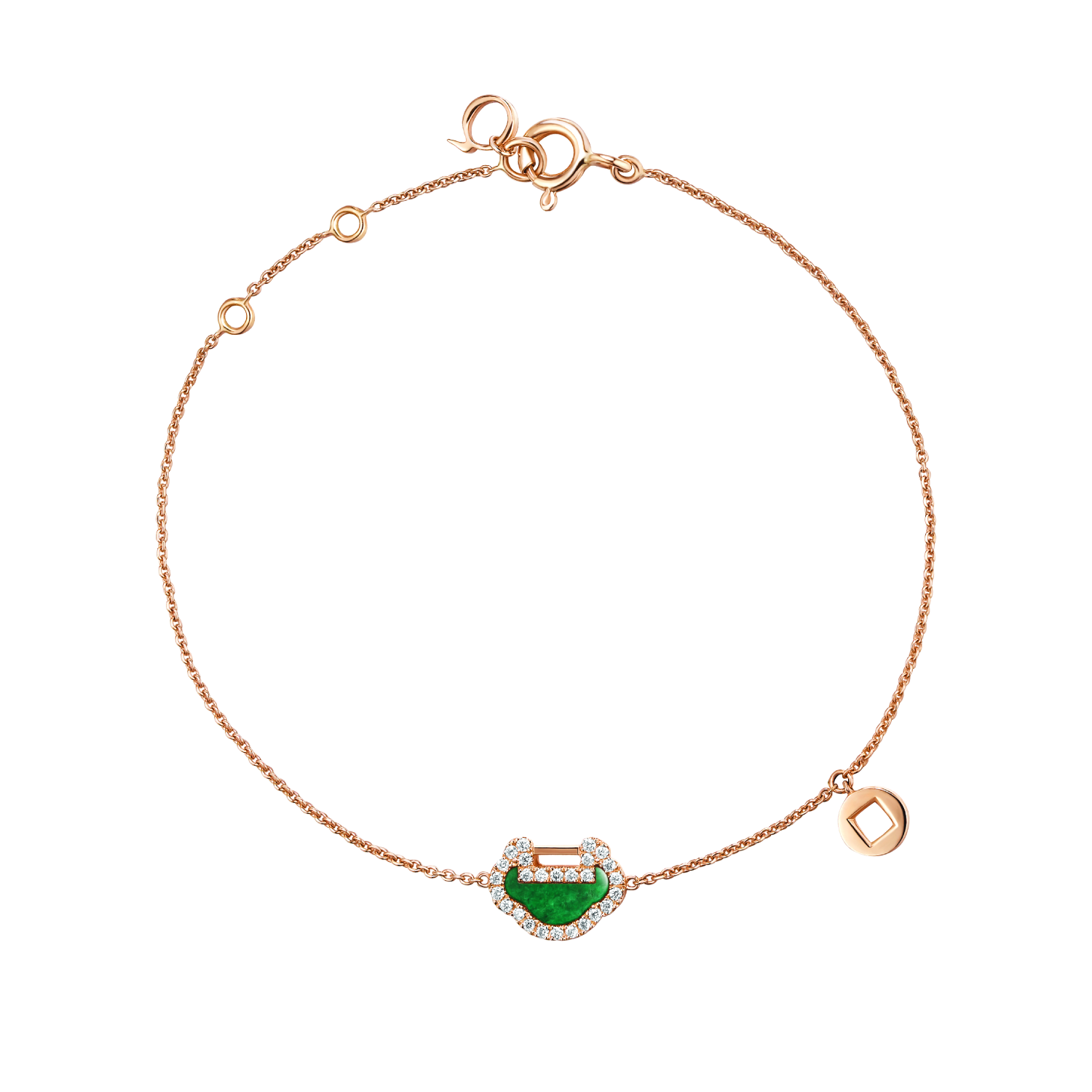 Petite Yu Yi bracelet in 18K rose gold with diamonds and jade